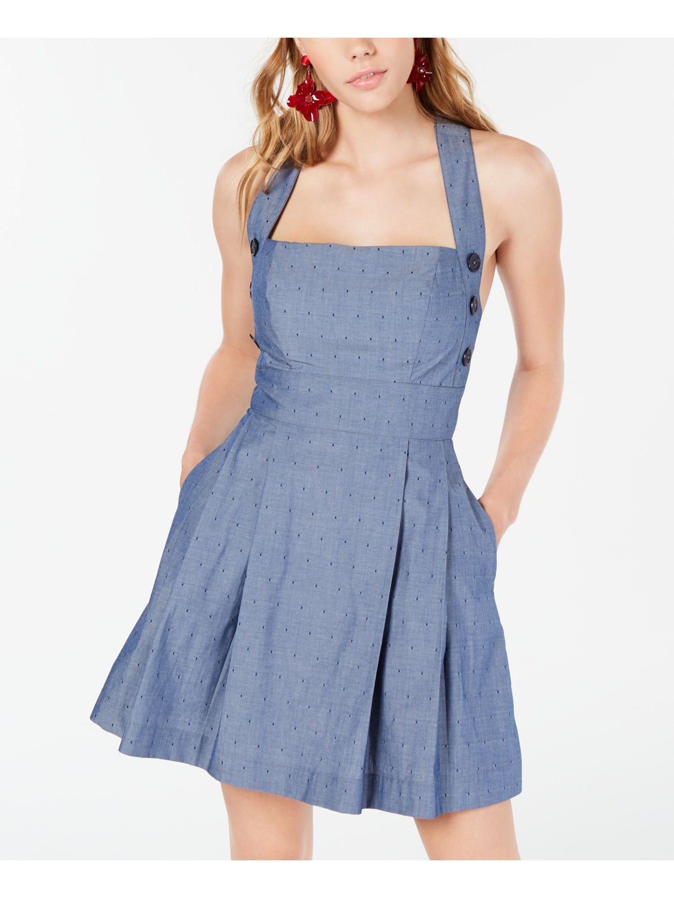 TEEZE ME Womens Fit + Flare Mini Dress Blue Pocketed Sleeveless Square Neck Denim Juniors 1