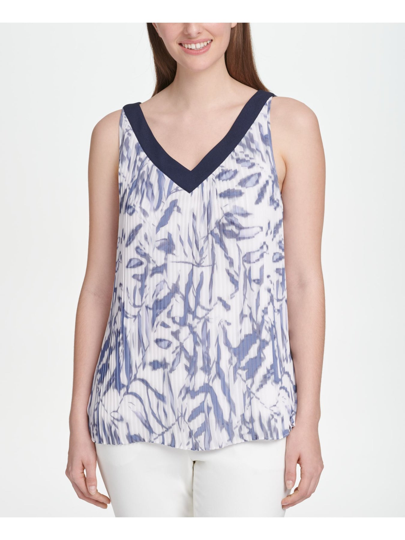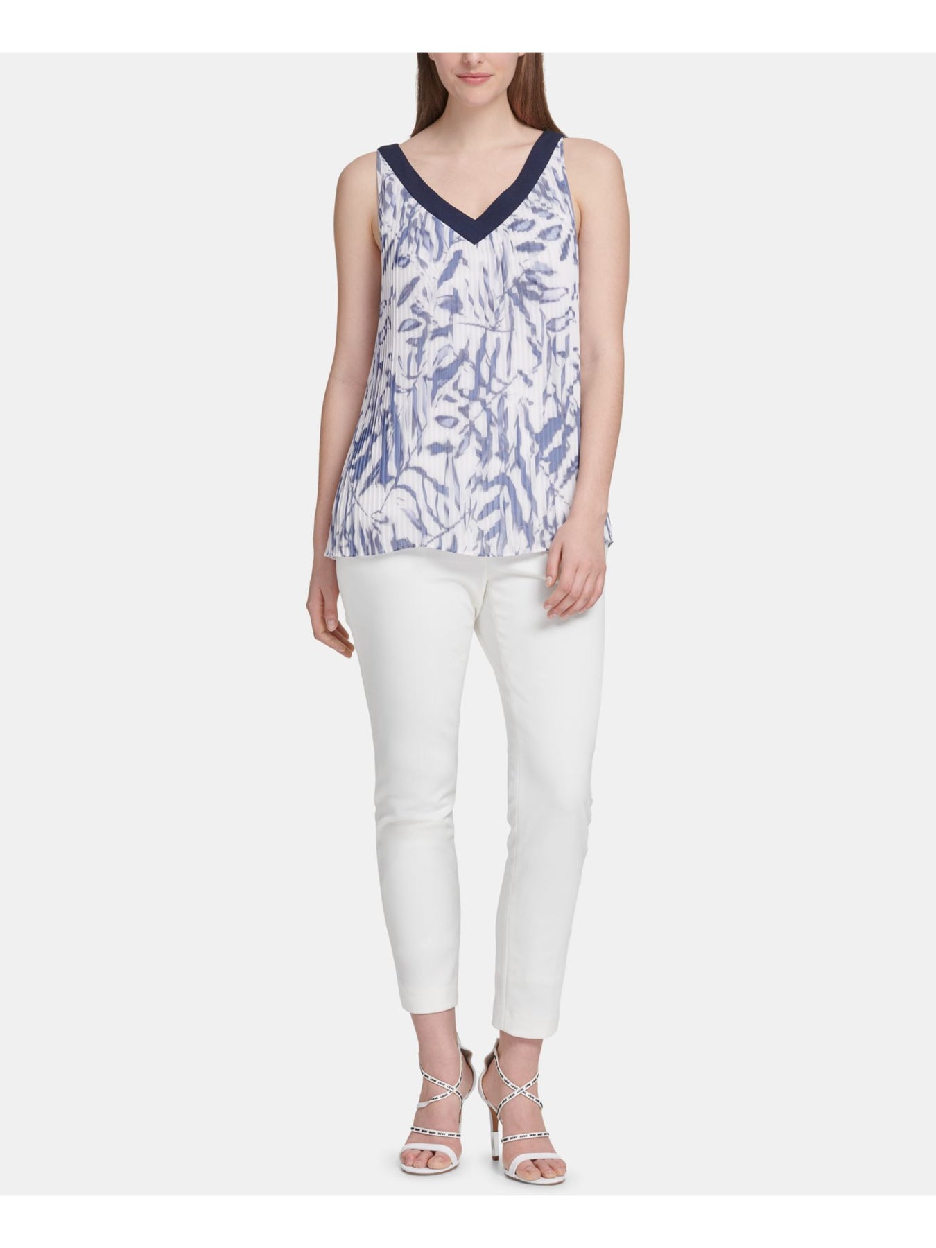 DKNY Womens Printed V Neck Wear To Work Trapeze Top