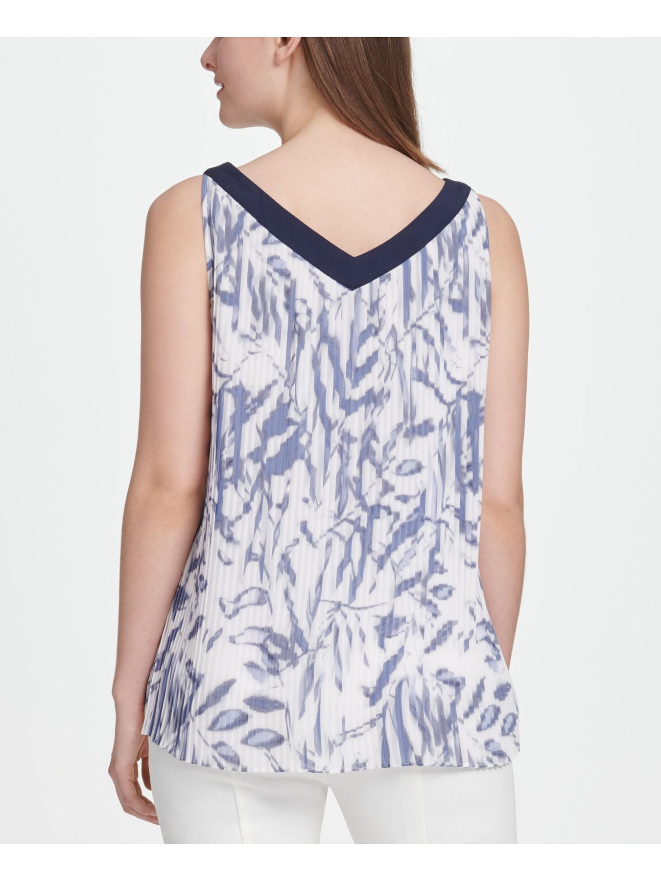 DKNY Womens Top Trapeze Blue V Neck Wear To Work Printed S