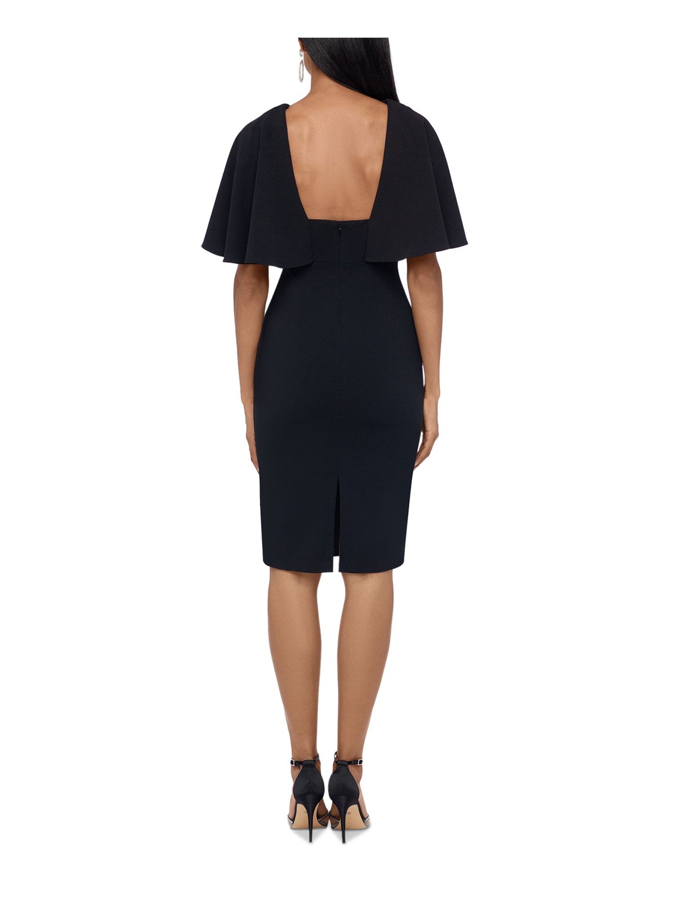 BETSY & ADAM Womens Sheath Knee Length Dress Black Flutter V Neck Party 6