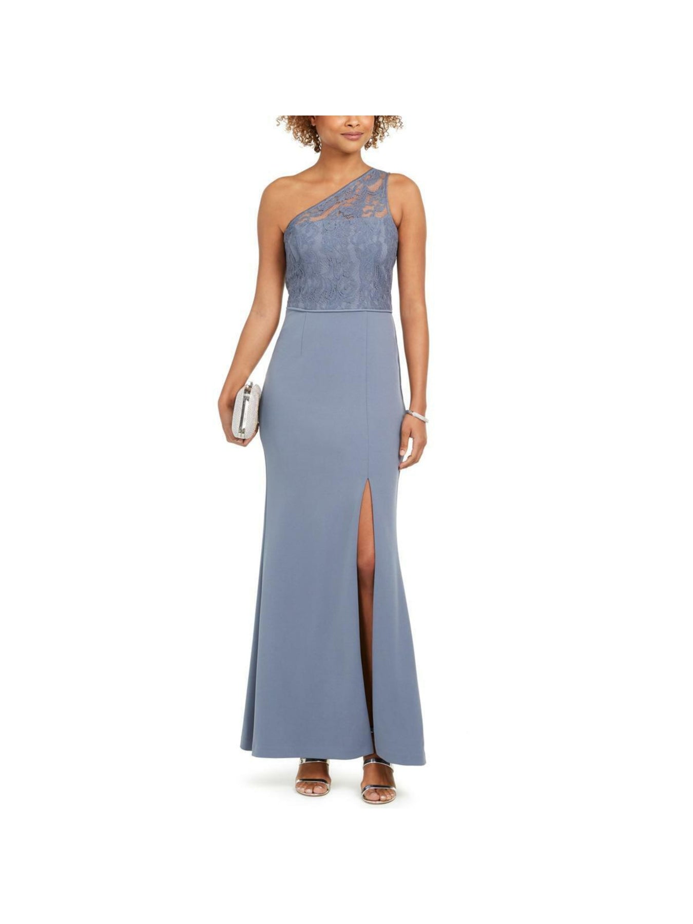 Womens Slitted Asymmetrical Neckline Full-Length Evening Sheath Dress