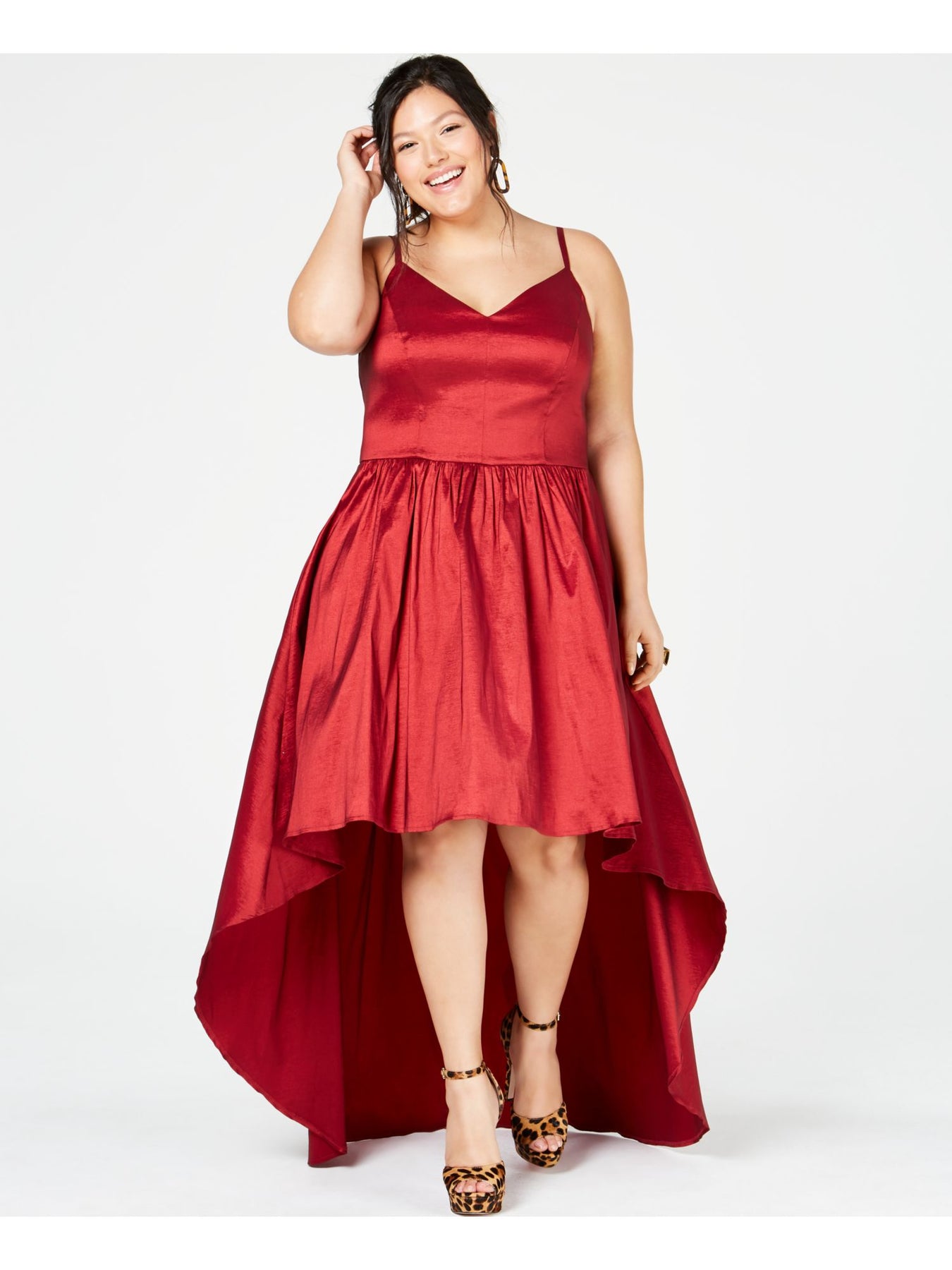 Womens Spaghetti Strap Knee Length Evening Hi-Lo Dress