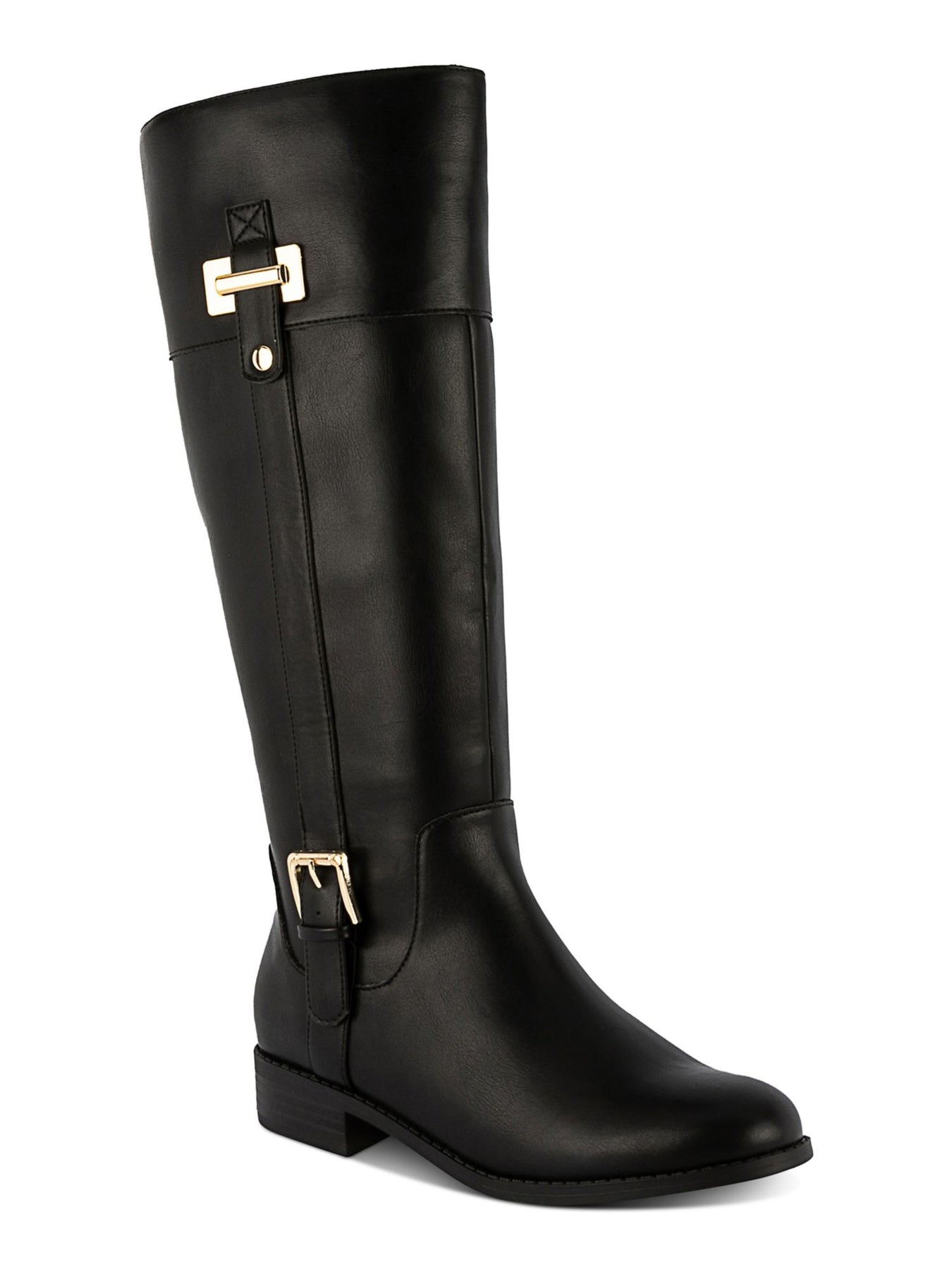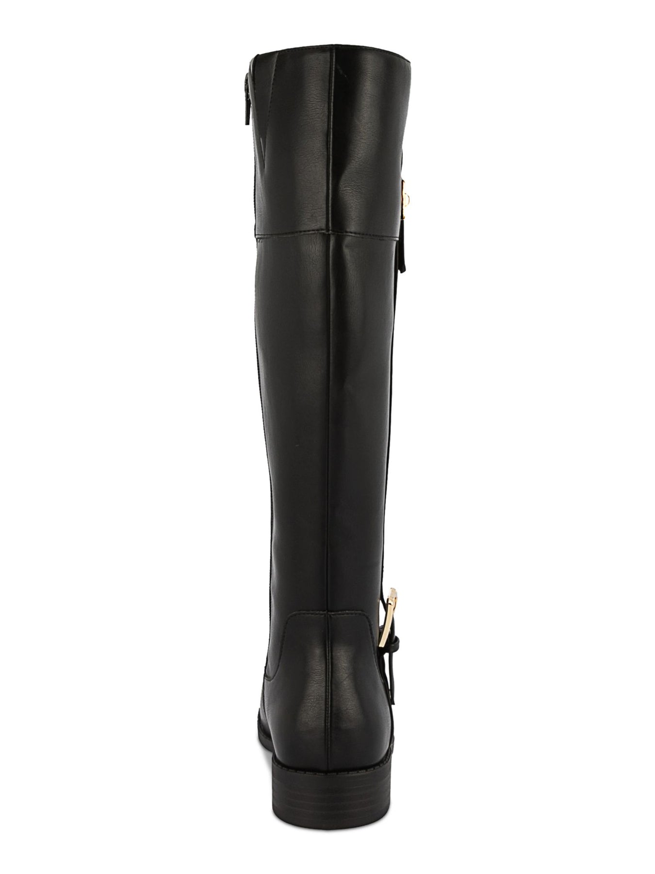 Womens Black Goring Padded Buckle Accent Edenn Almond Toe Block Heel Zip-Up Riding Boot M