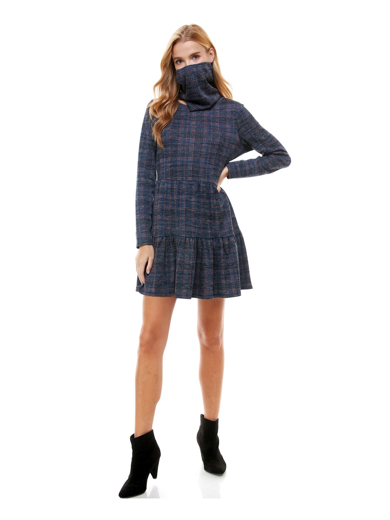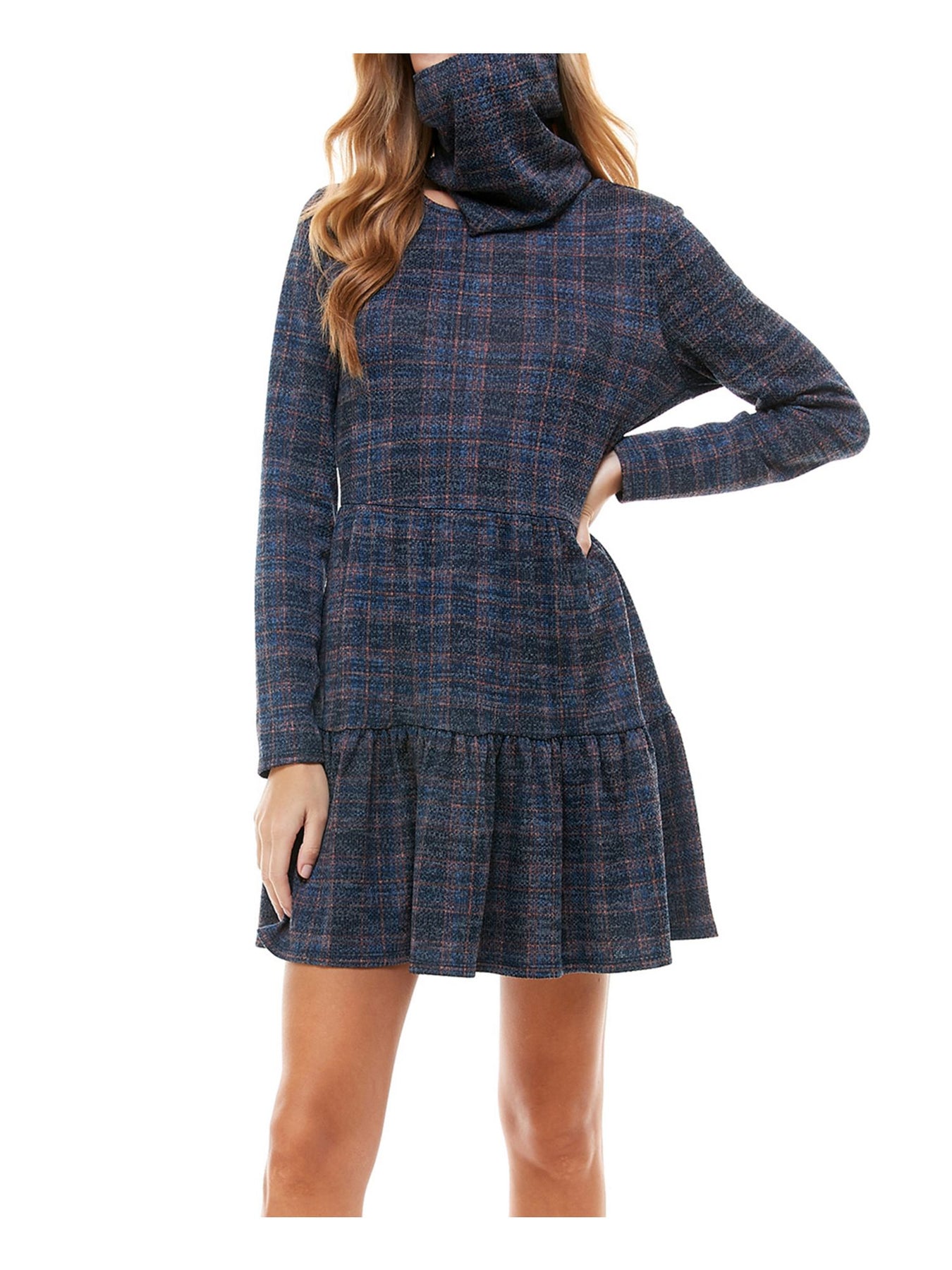 BEBOP Womens Long Sleeve Scoop Neck Cowl Hem Tier Short Fit + Flare Dress