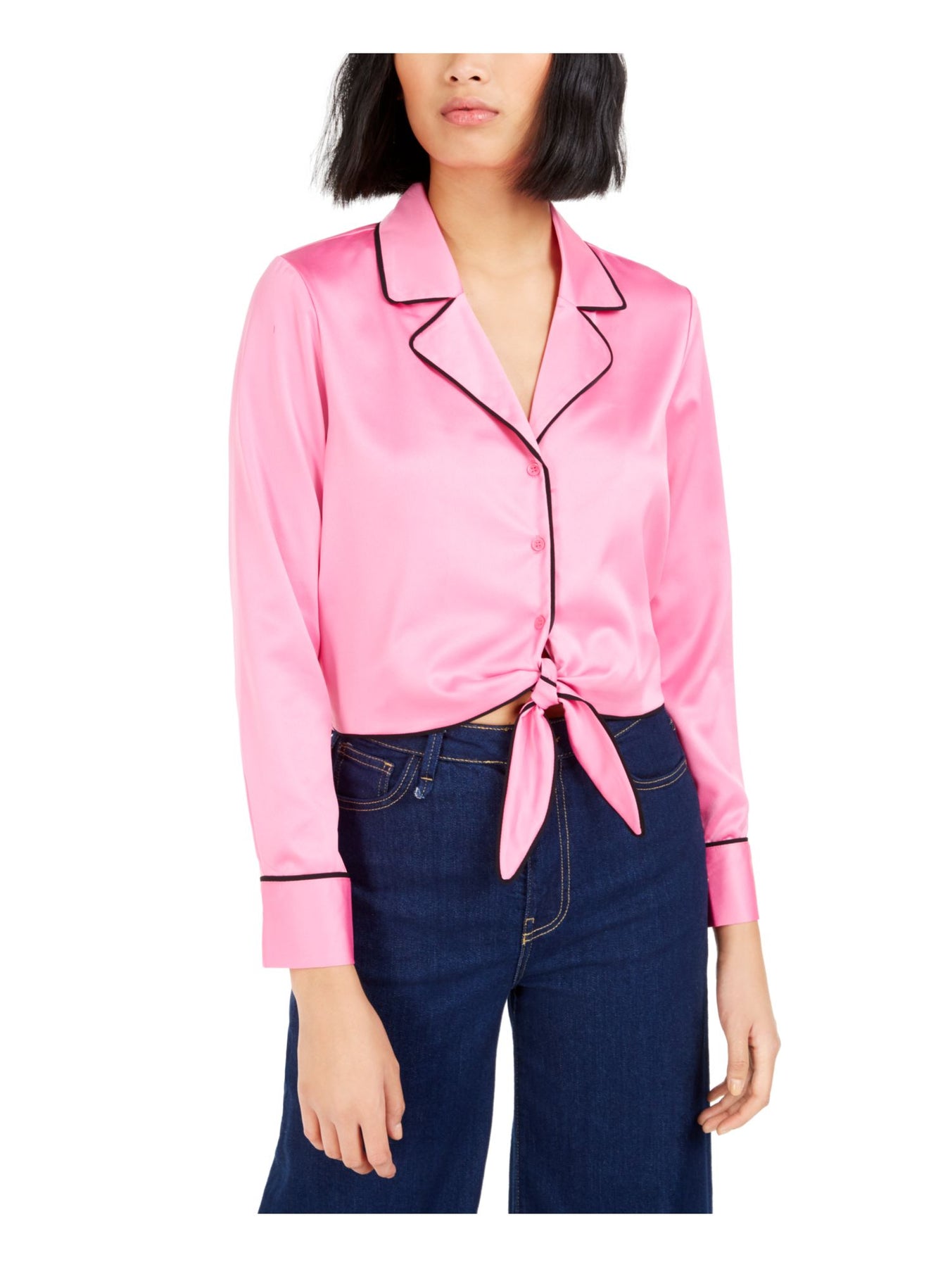 BAR III Womens Top Button Up Pink Tie Cuffed Collared M