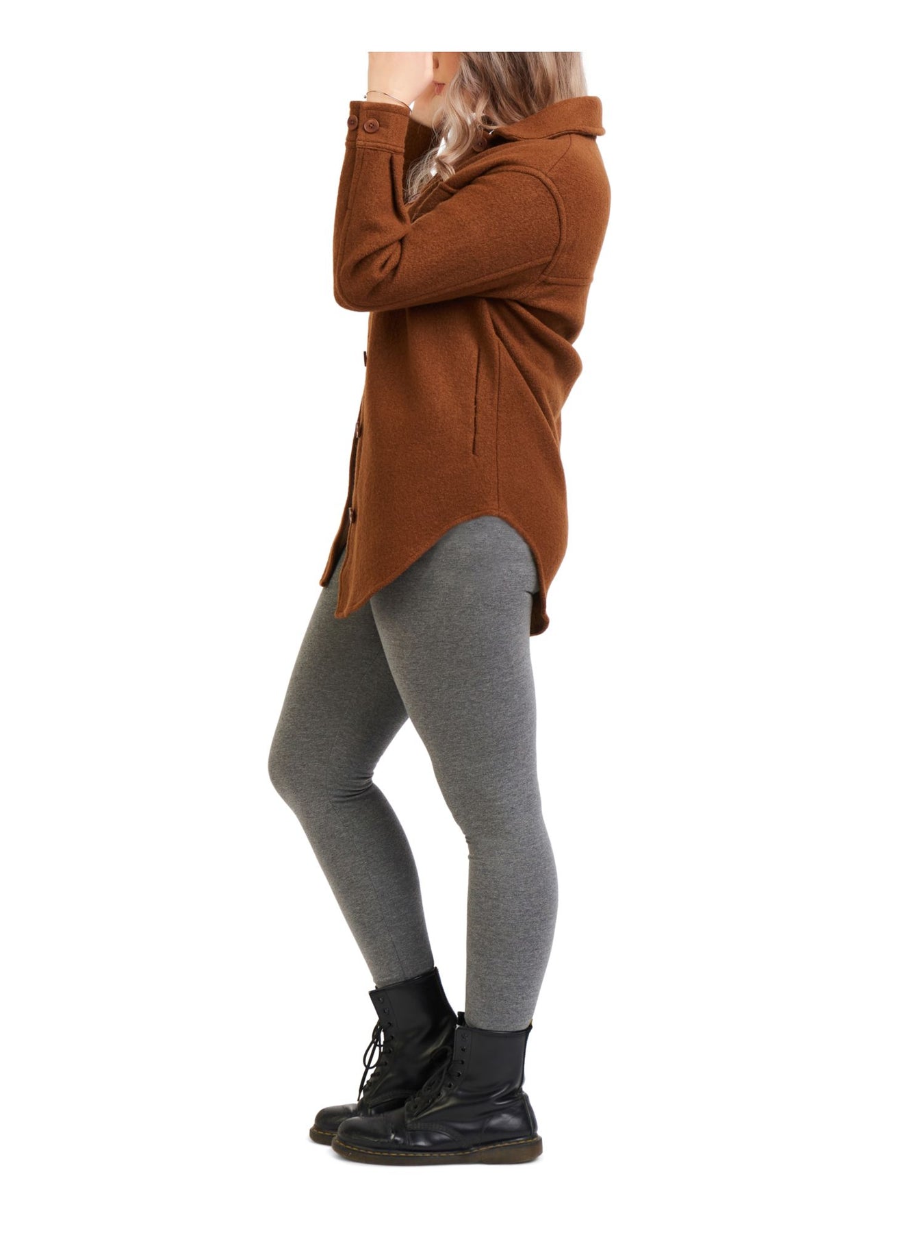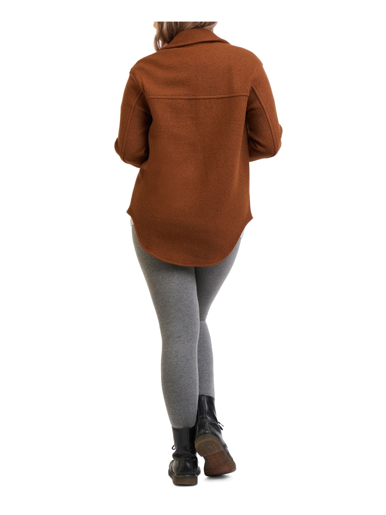 BLACK TAPE Womens Pocketed Textured Curved Hem Jacket Cuffed Sleeve Collared Button Up Button Down Top
