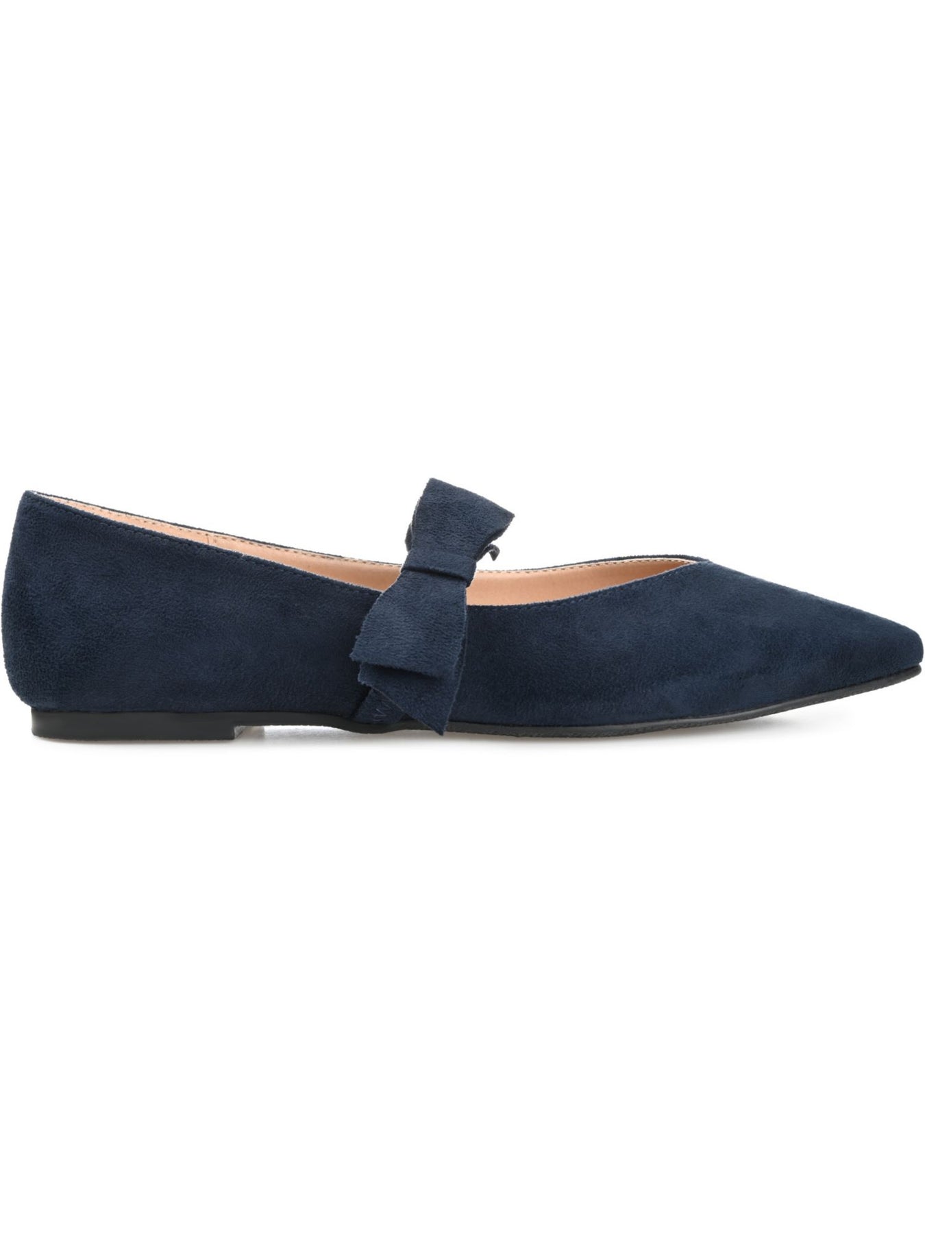 Womens Navy Bow Strap Mary Jane Goring Padded Aizlynn Pointed Toe Slip On Flats Shoes