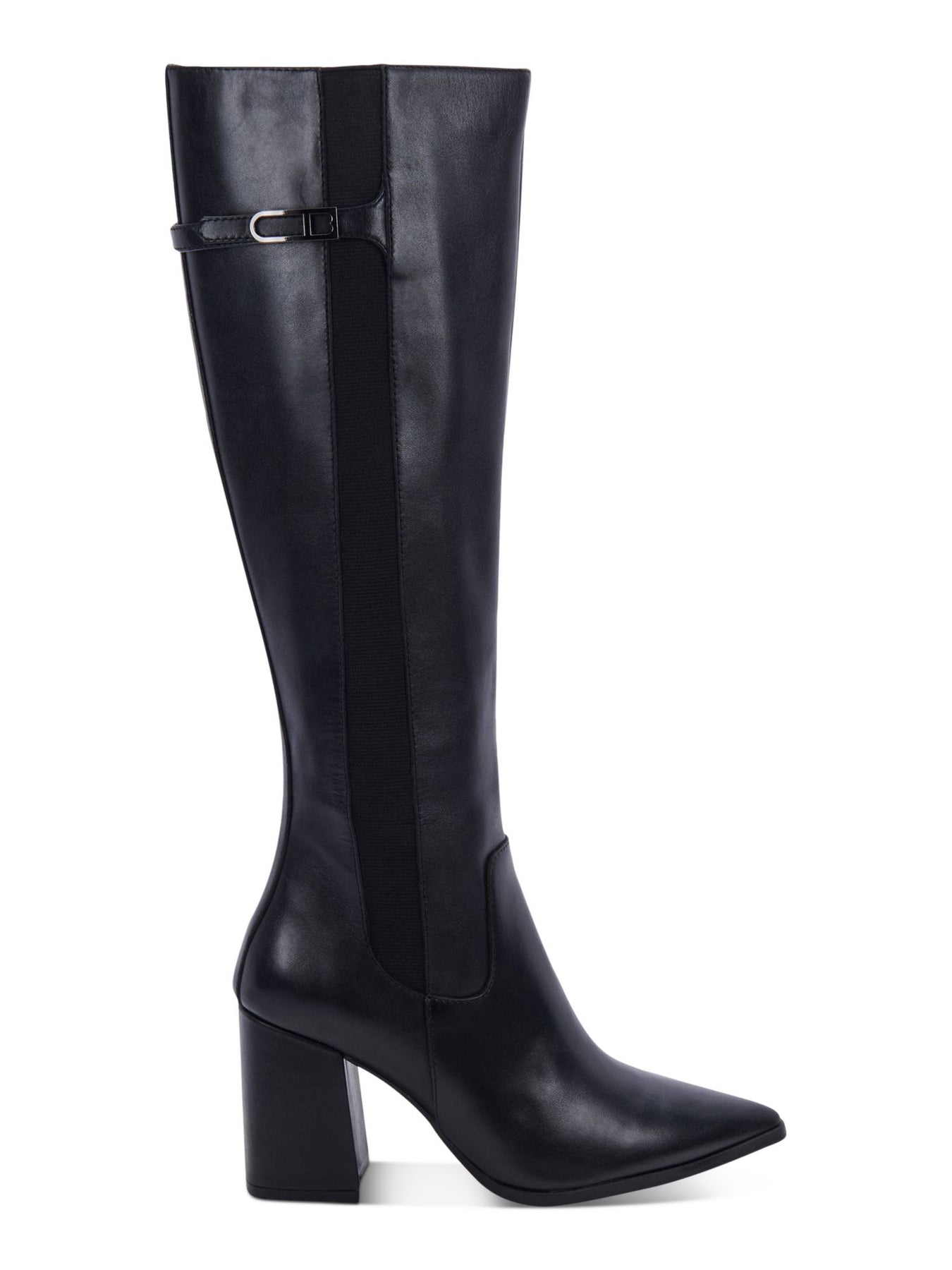 Womens Black Slip Resistant Water Resistant Ireland Pointed Toe Stacked Heel Zip-Up Leather Heeled Boots M
