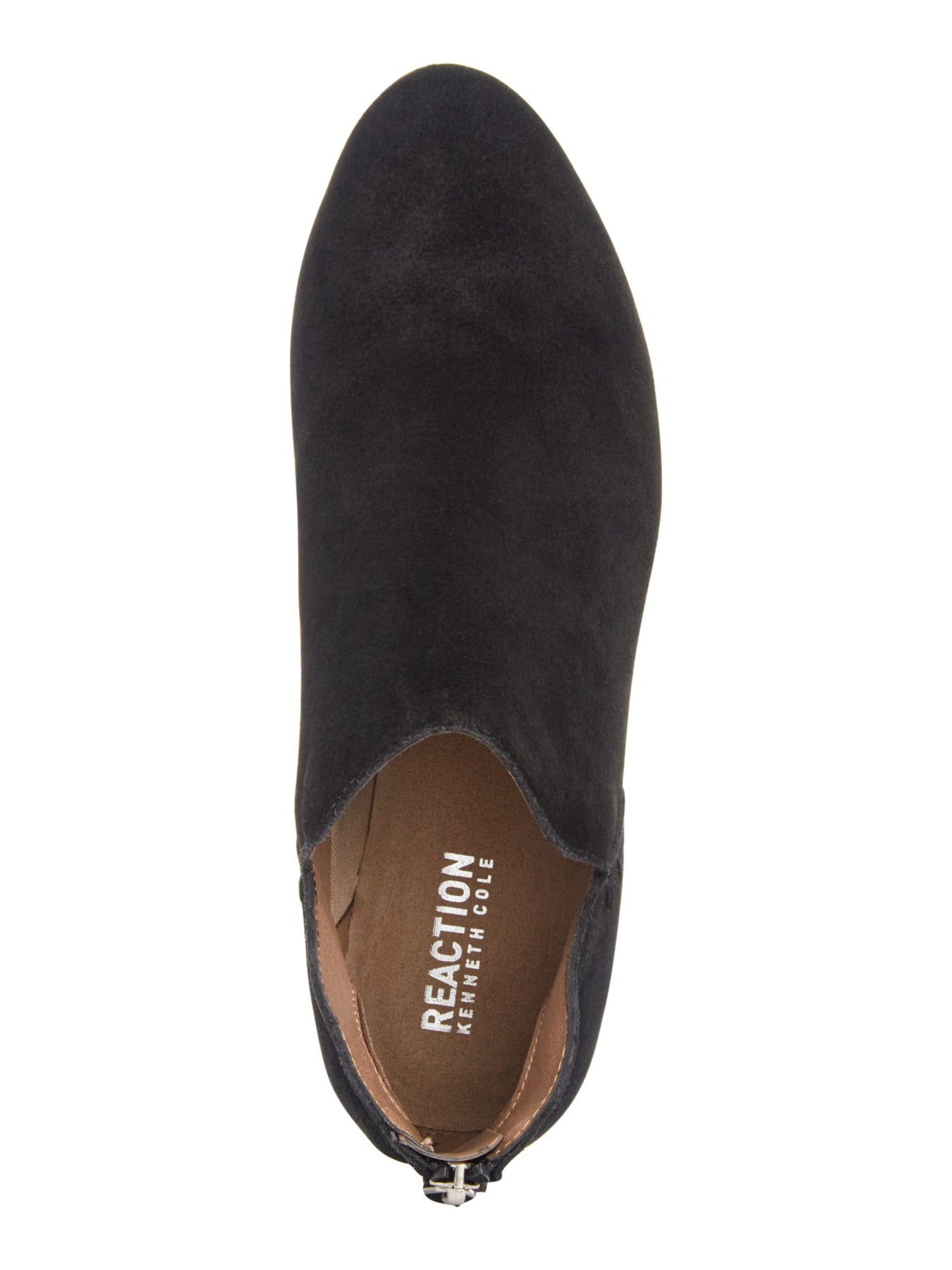 Womens Black Notched At Sides Padded Tasseled Side Way Almond Toe Stacked Heel Zip-Up Dress Booties