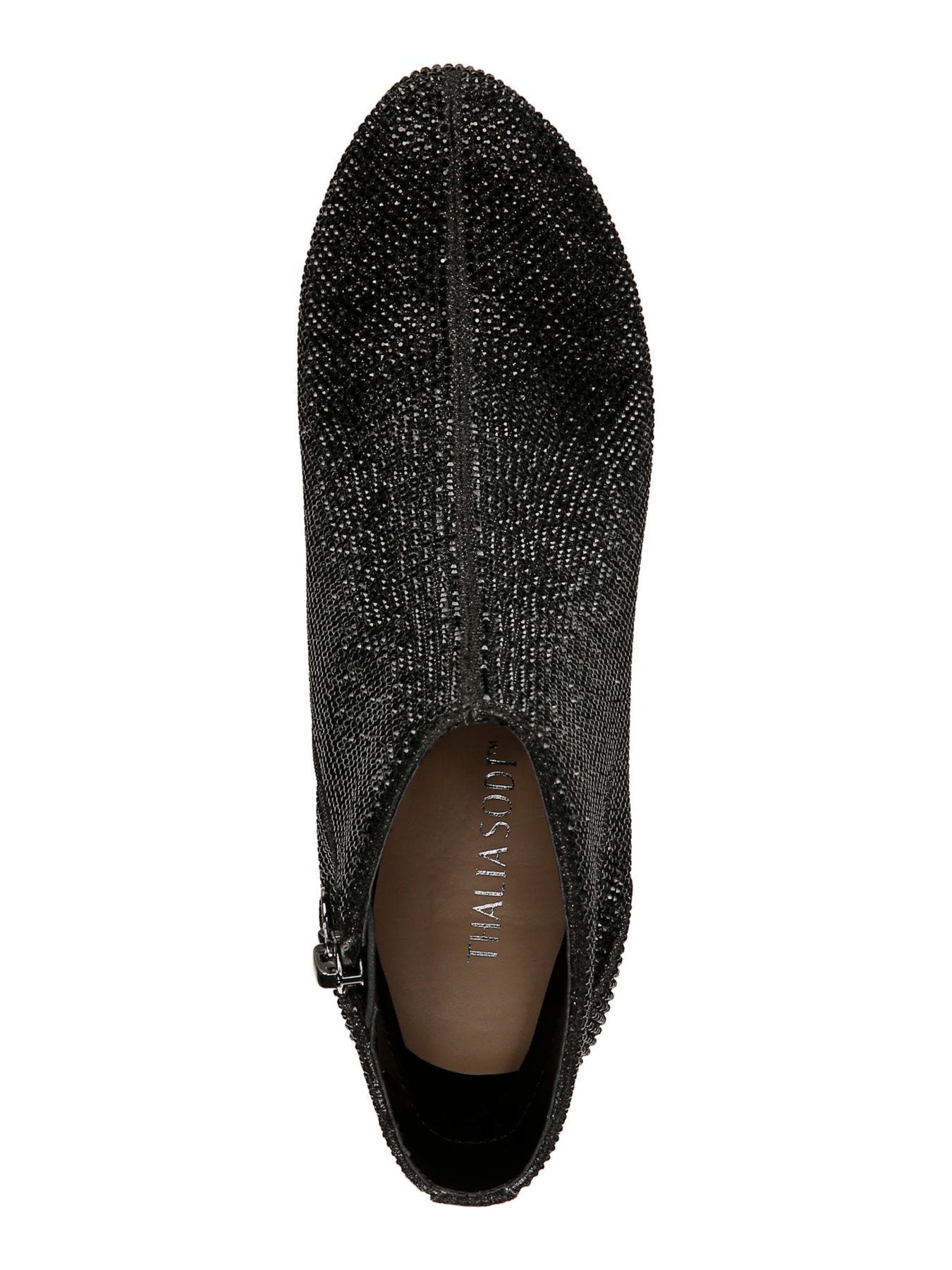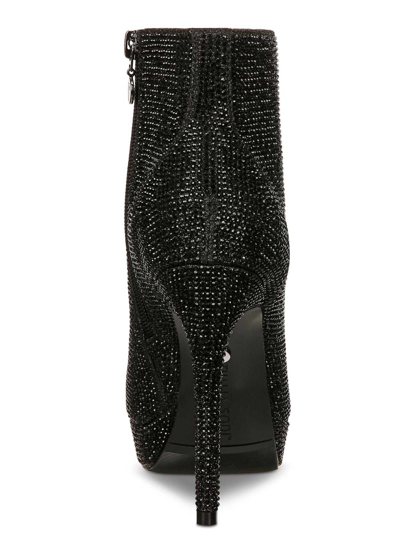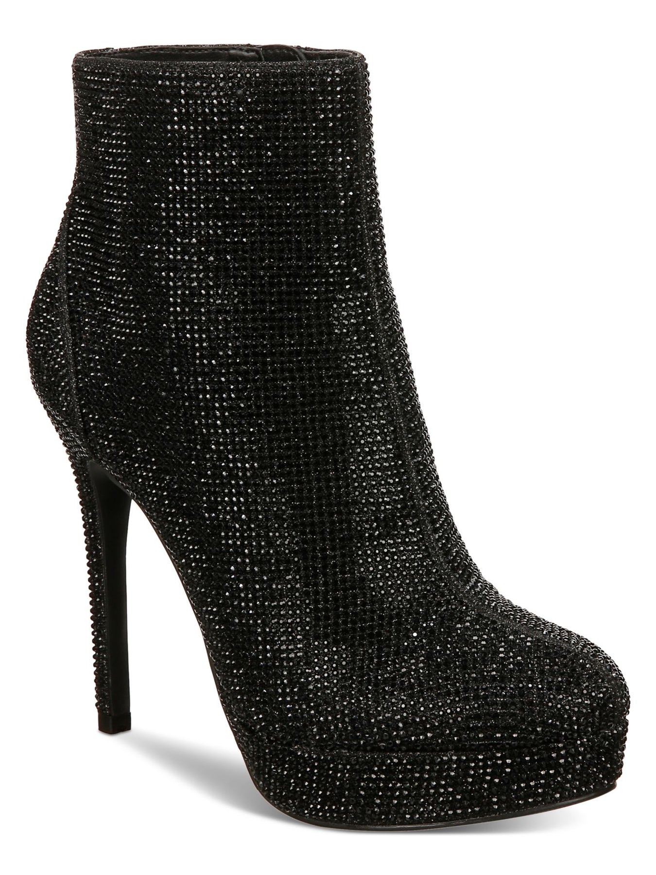 Womens Black Rhinestone Padded Chiara Round Toe Stiletto Zip-Up Dress Heeled Boots M