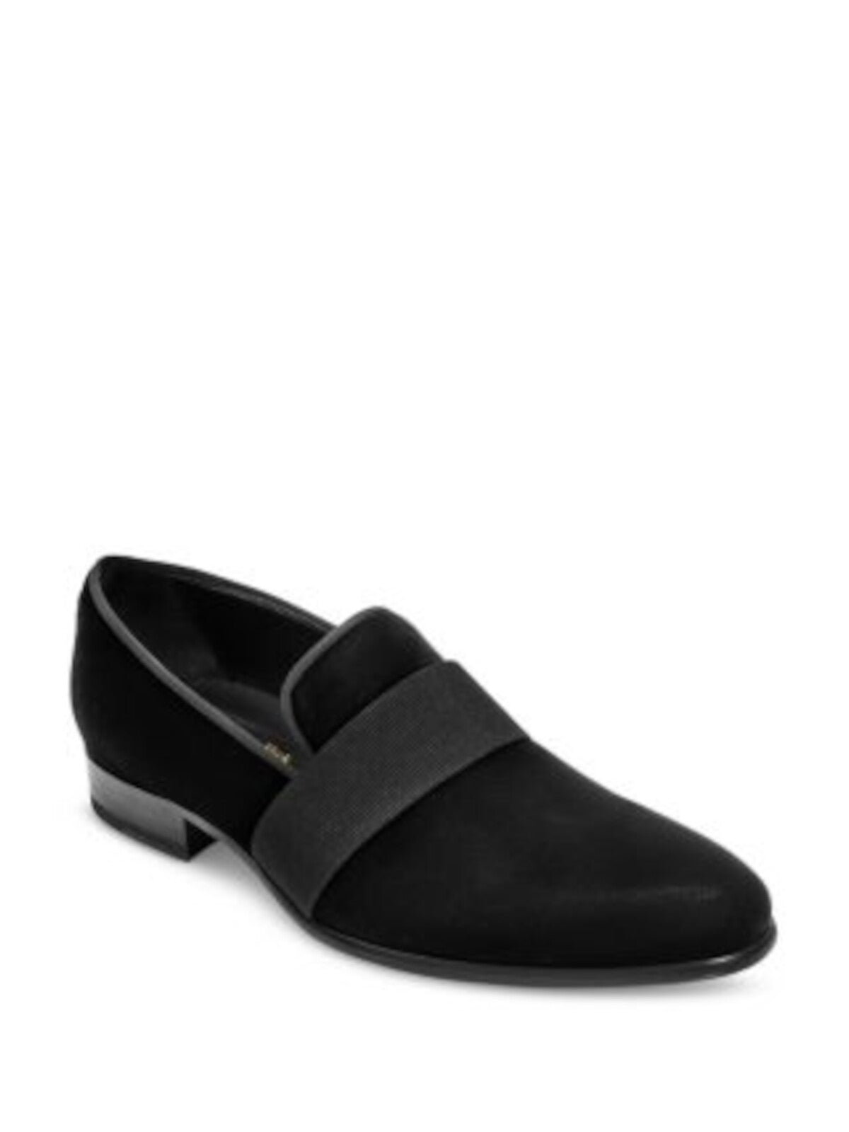 TO BOOT NEW YORK Mens Black Notched Padded Adam Derrick Park Avenue Almond Toe Block Heel Slip On Dress Loafers Shoes