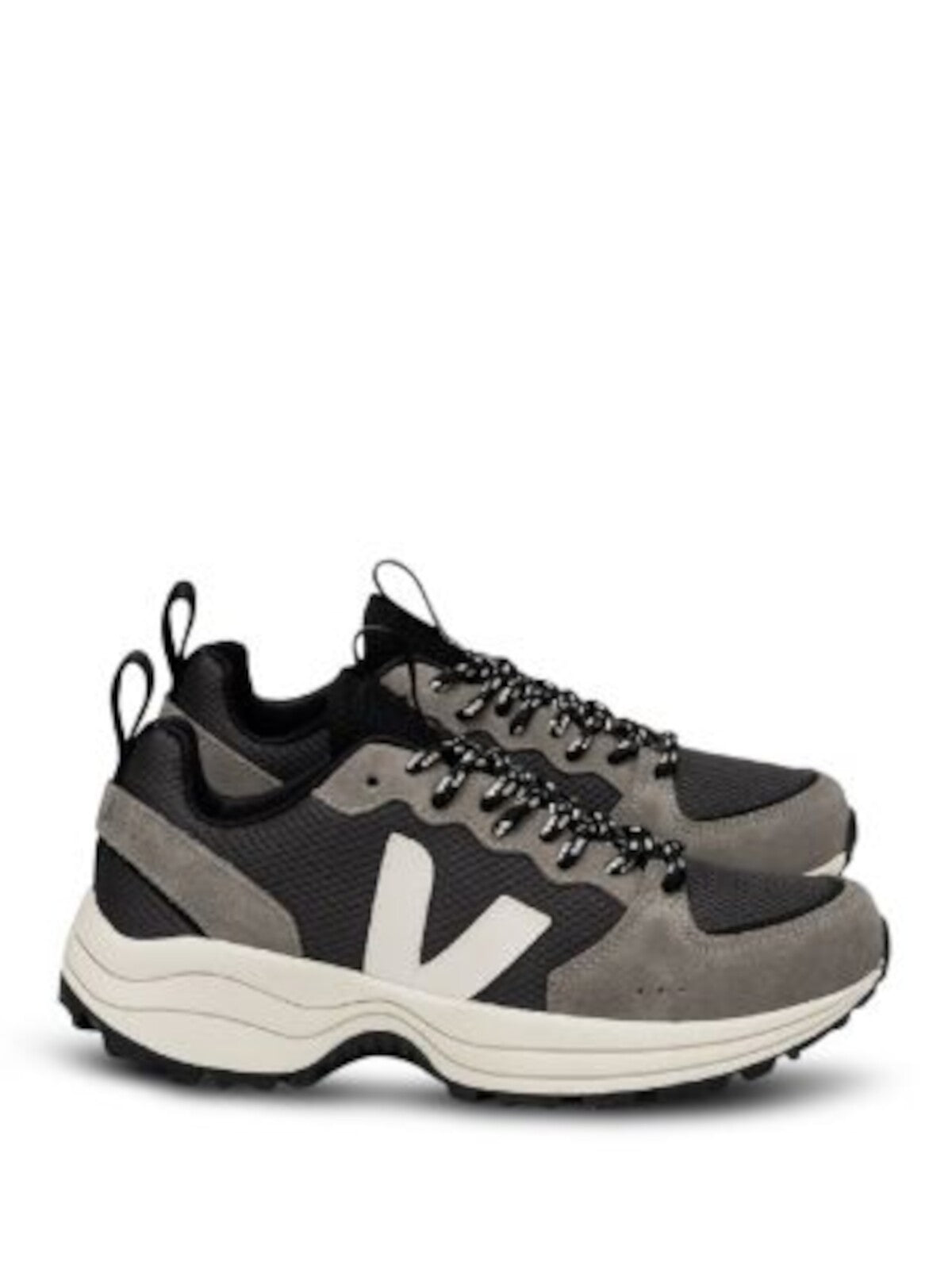 Mens Gray Mixed Media Logo Accent Heel Pull-Tab Padded Perforated Venturi Round Toe Wedge Lace-Up Sneakers Shoes