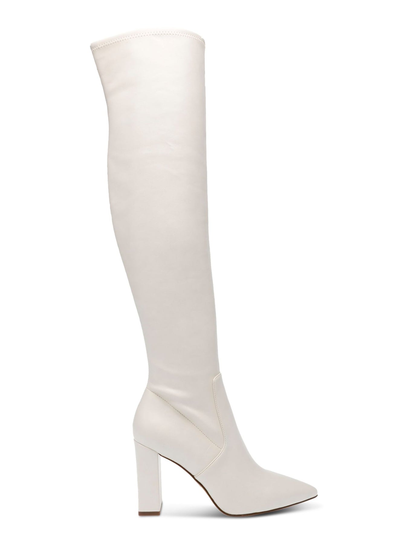 Womens Ivory Padded Eileene Pointed Toe Block Heel Zip-Up Dress Heeled Boots M