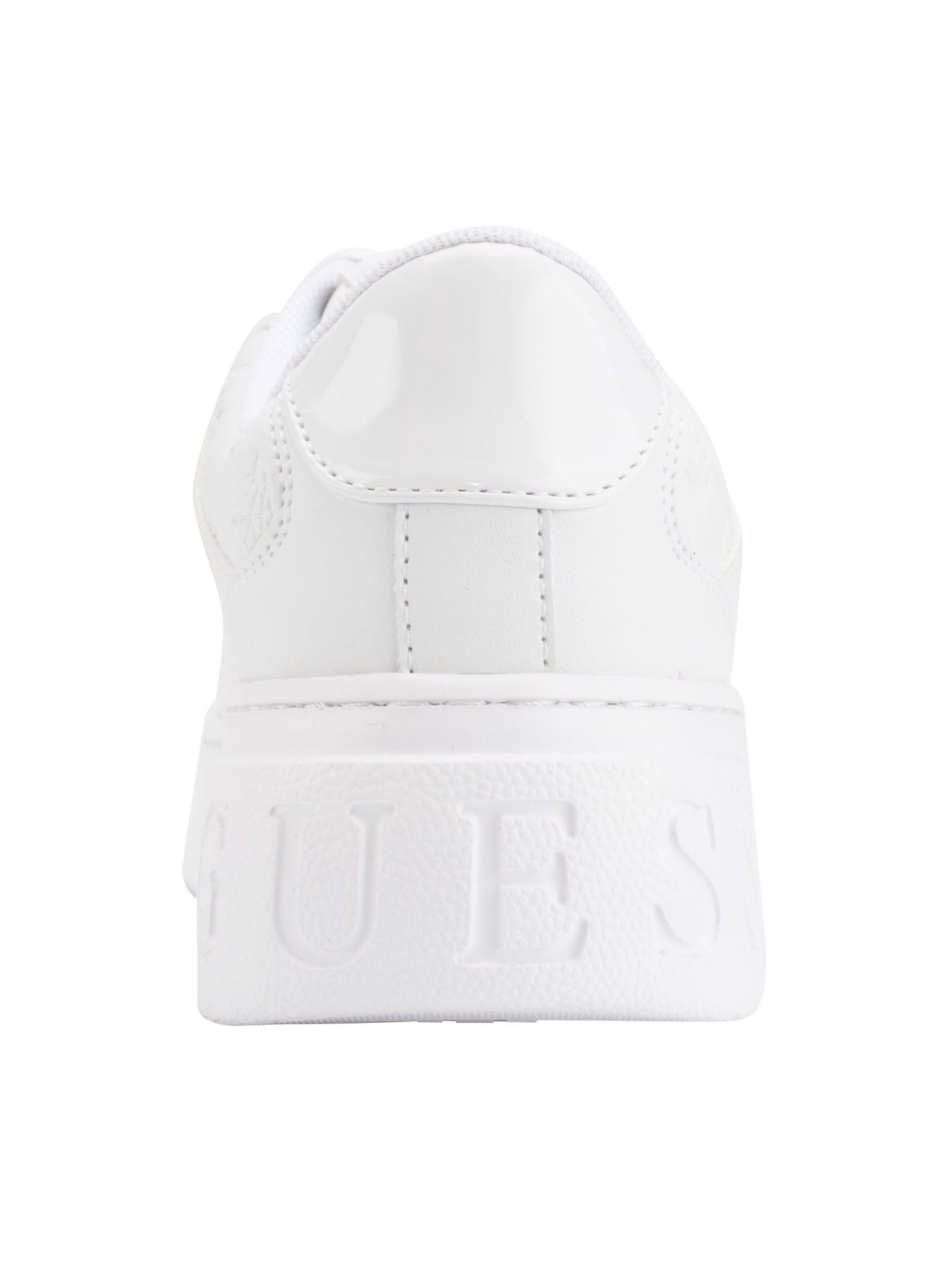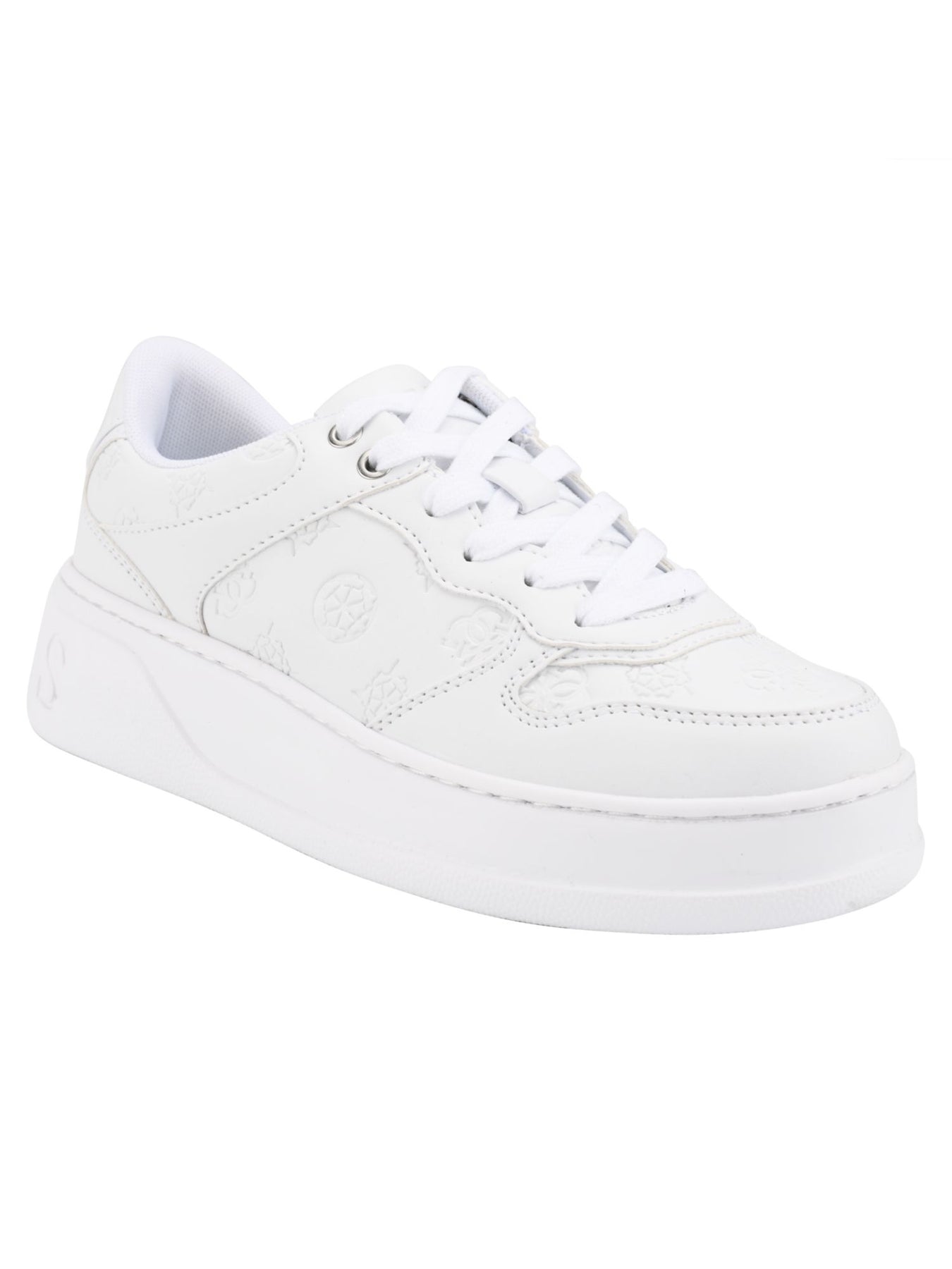 Womens White 1" Platform Debossed Accents Padded Cleva Round Toe Platform Lace-Up Sneakers Shoes M