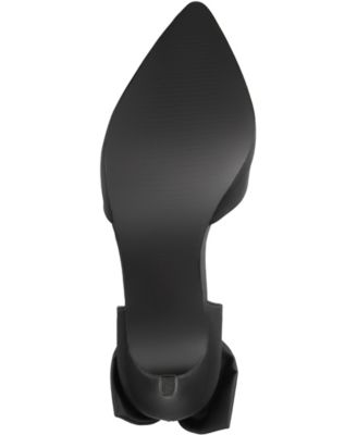 Womens Black Scalloped Footbed Bow Accent Padded Tanzi Pointed Toe Stiletto Slip On Dress Pumps Shoes