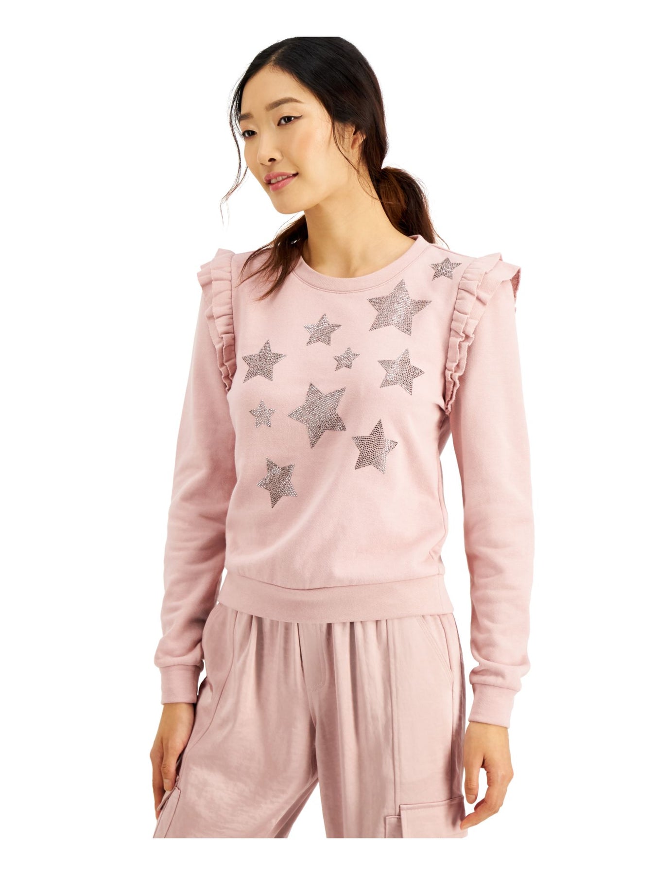 INC Womens Pink Ruffled Embellished Stars Printed Long Sleeve Top L