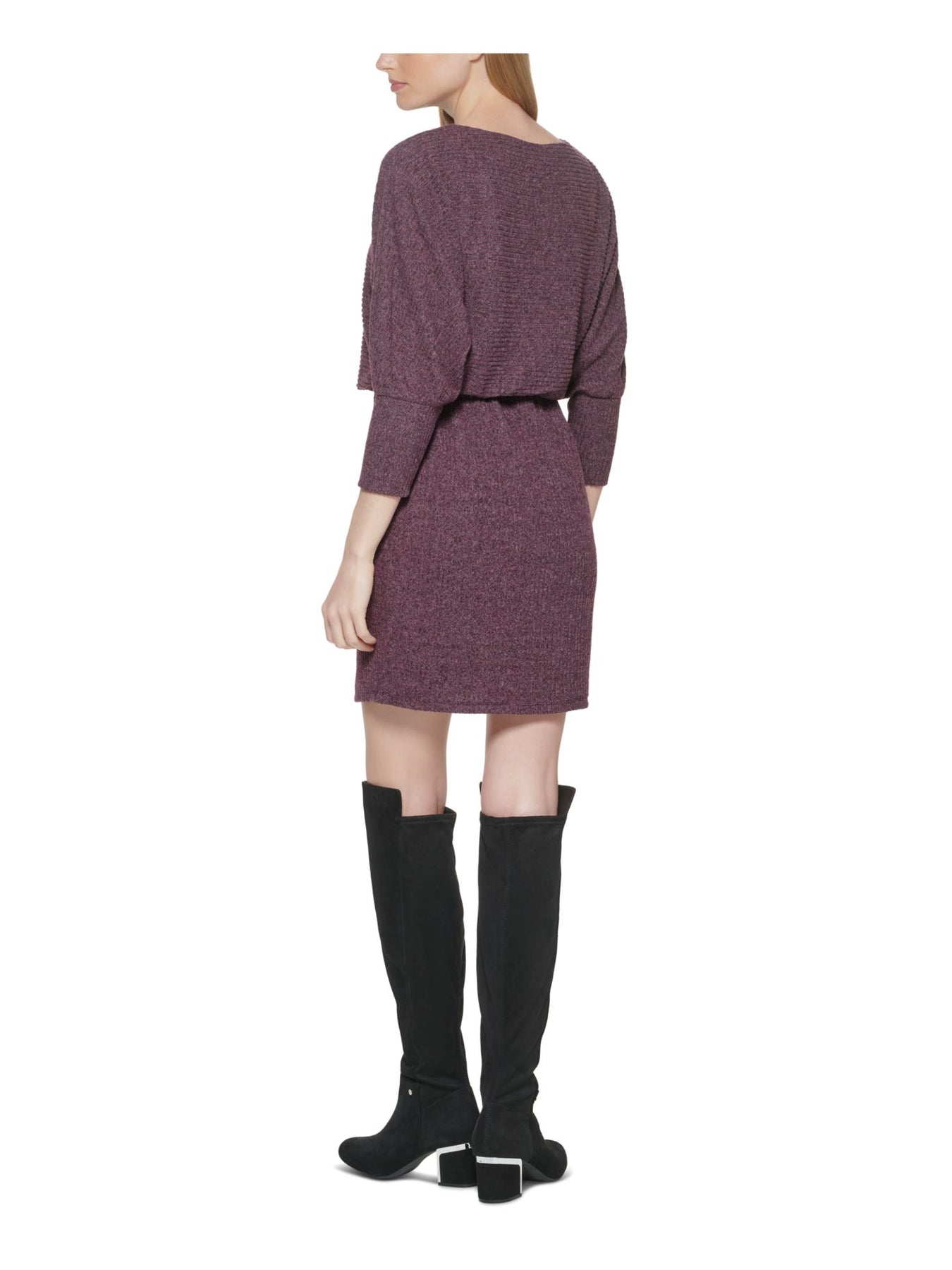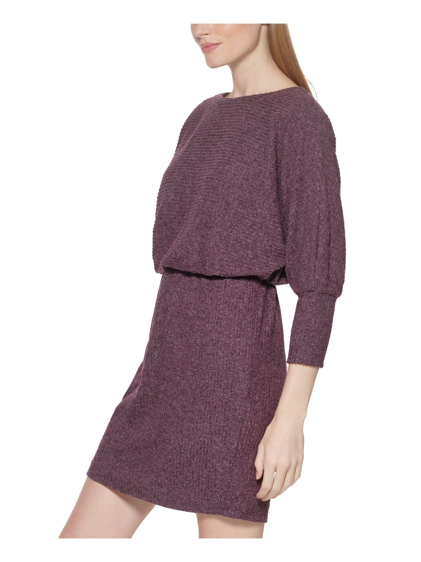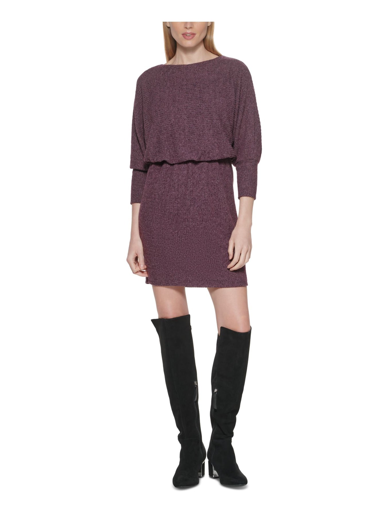 JESSICA HOWARD Womens Blouson Short Dress Purple Knit Ribbed Dolman Sleeve Boat Neck Wear To Work Solid Elasticized Waist 16