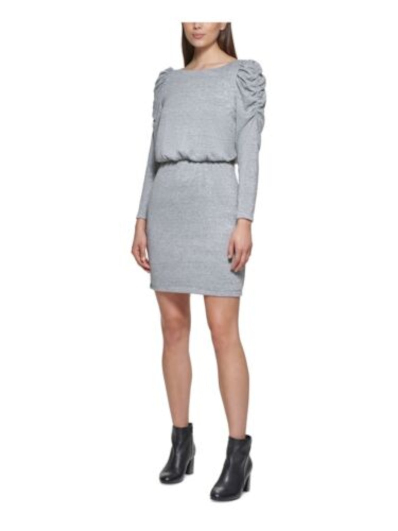 Womens Metallic Heather Pouf Sleeve Scoop Neck Above The Knee Evening Blouson Dress
