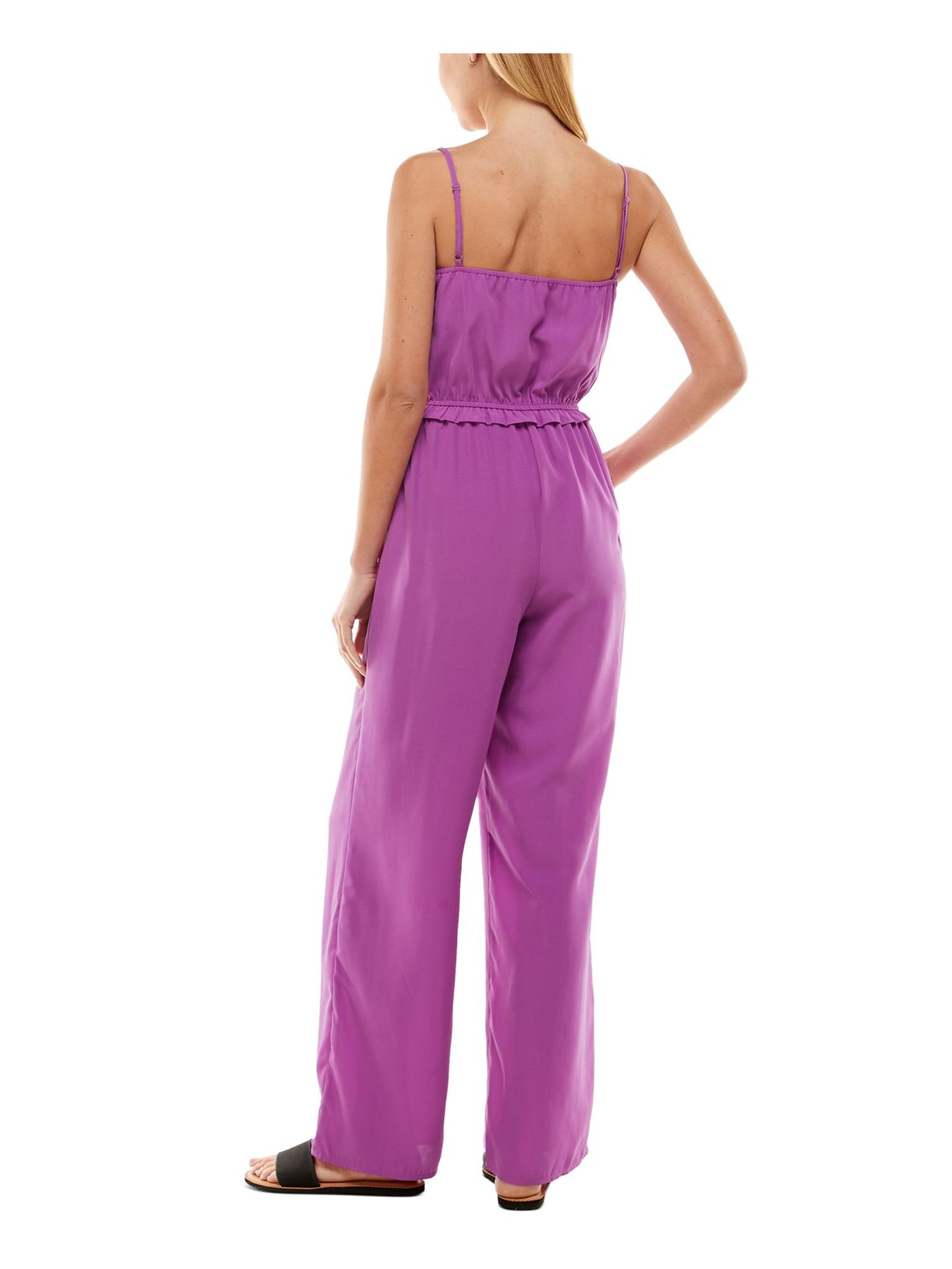 Womens Pink Ruffled Adjustable Spaghetti Strap Surplice Neckline Wide Leg Jumpsuit
