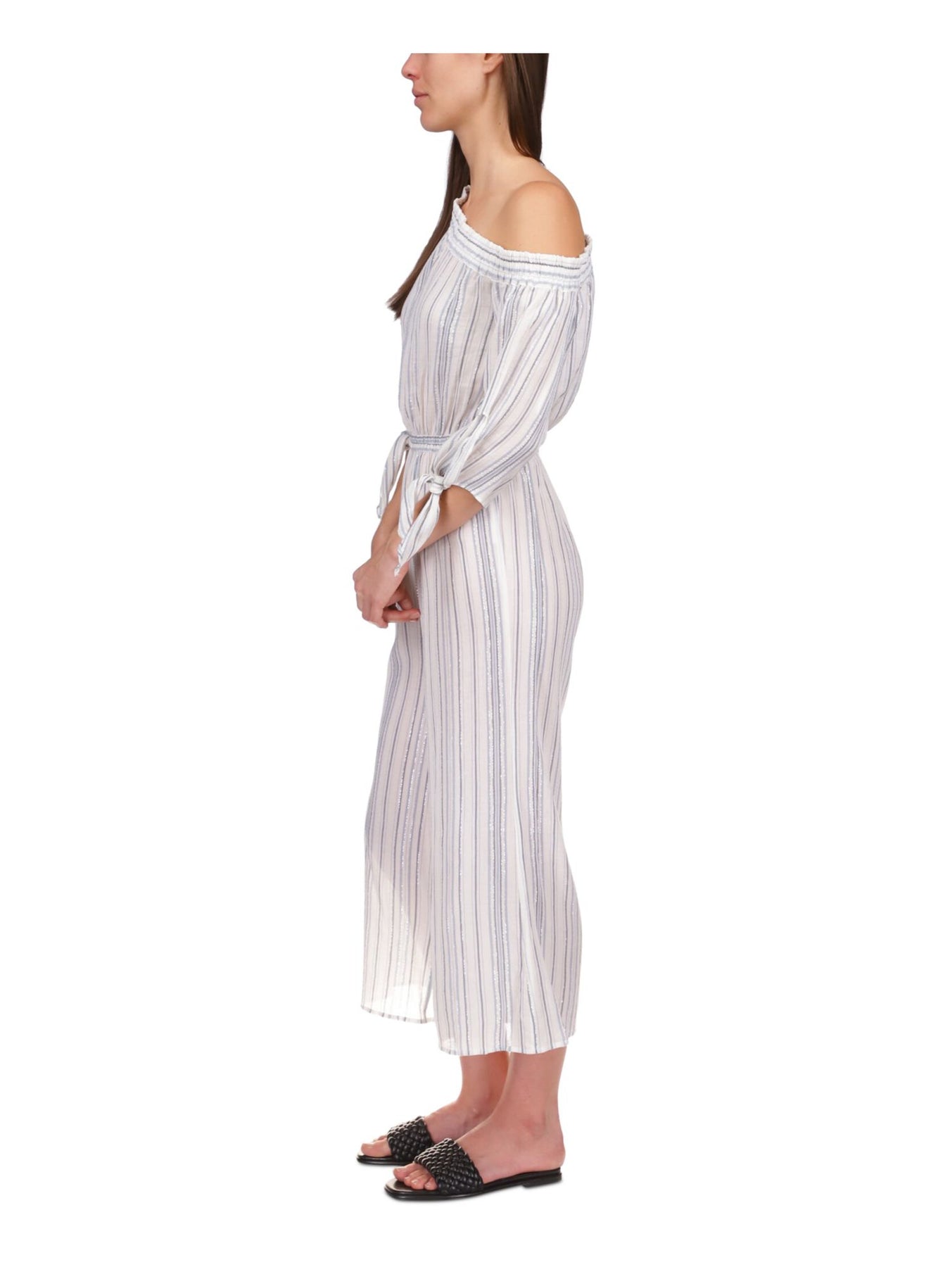 MICHAEL MICHAEL KORS Womens White Striped Asymmetrical Neckline High Waist Jumpsuit