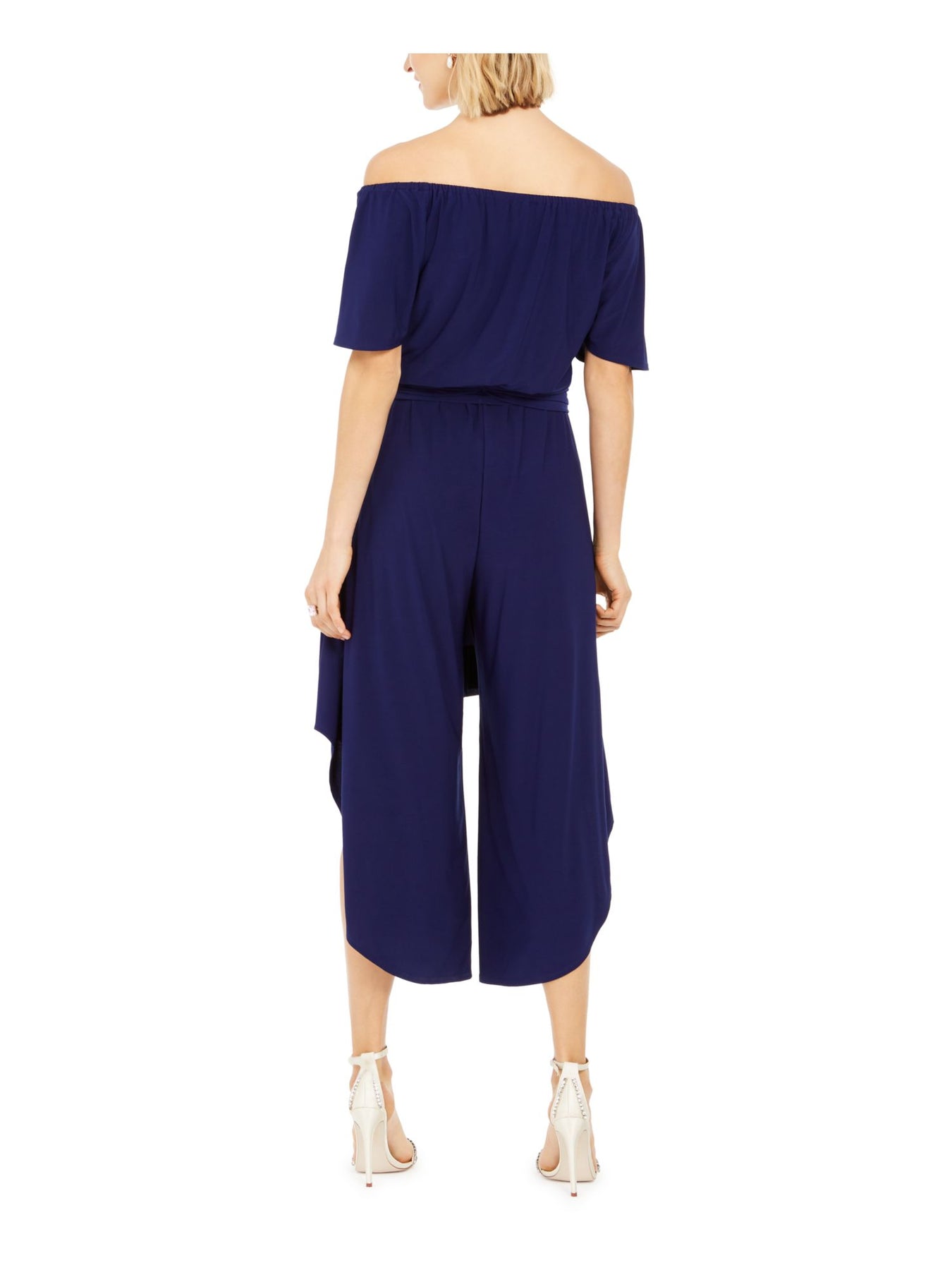 MSK Womens Navy Belted Off Shoulder Evening Cropped Jumpsuit