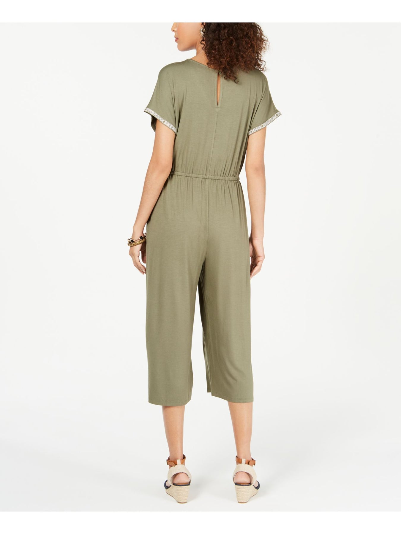 STYLE & COMPANY Womens Embroidered Pocketed Short Sleeve V Neck Straight leg Jumpsuit
