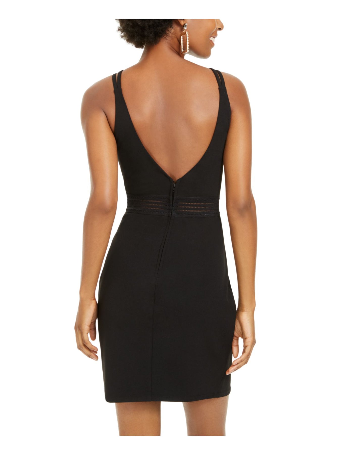 CITY STUDIO Womens Body Con Mini Dress Black Spaghetti Strap V Neck Cocktail Juniors 1