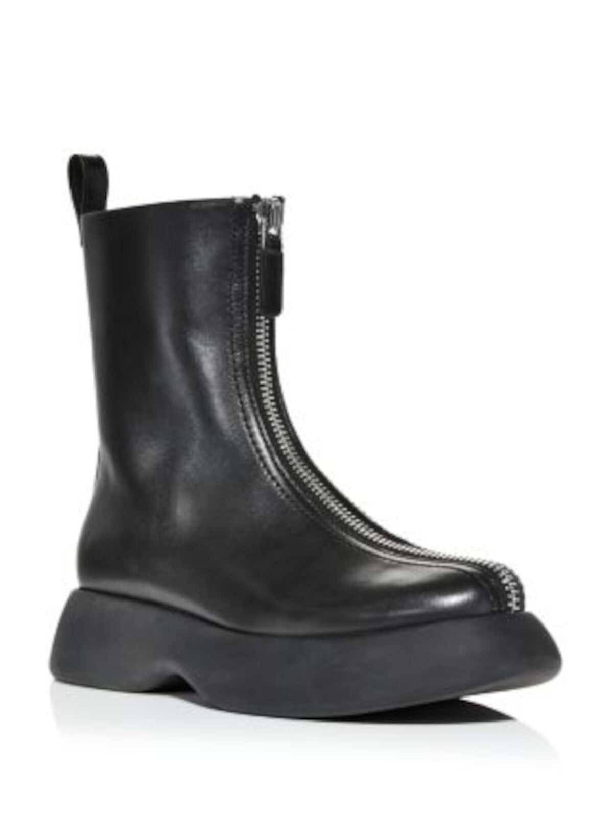3.1 PHILLIP LIM Womens Black 1-1/2" Platform Heel Pull-Tab Padded Mercer Round Toe Wedge Zip-Up Leather Combat Boots 37