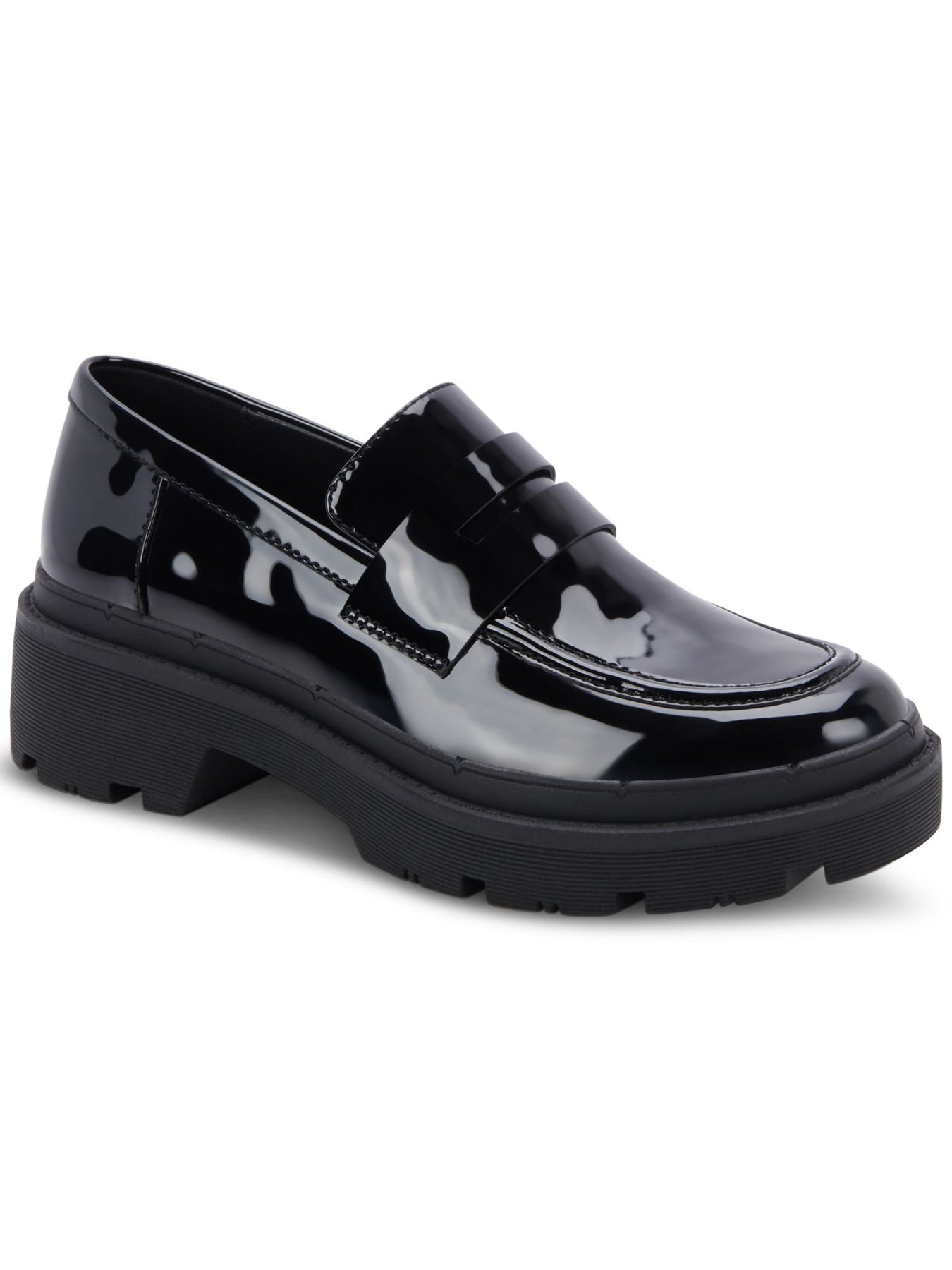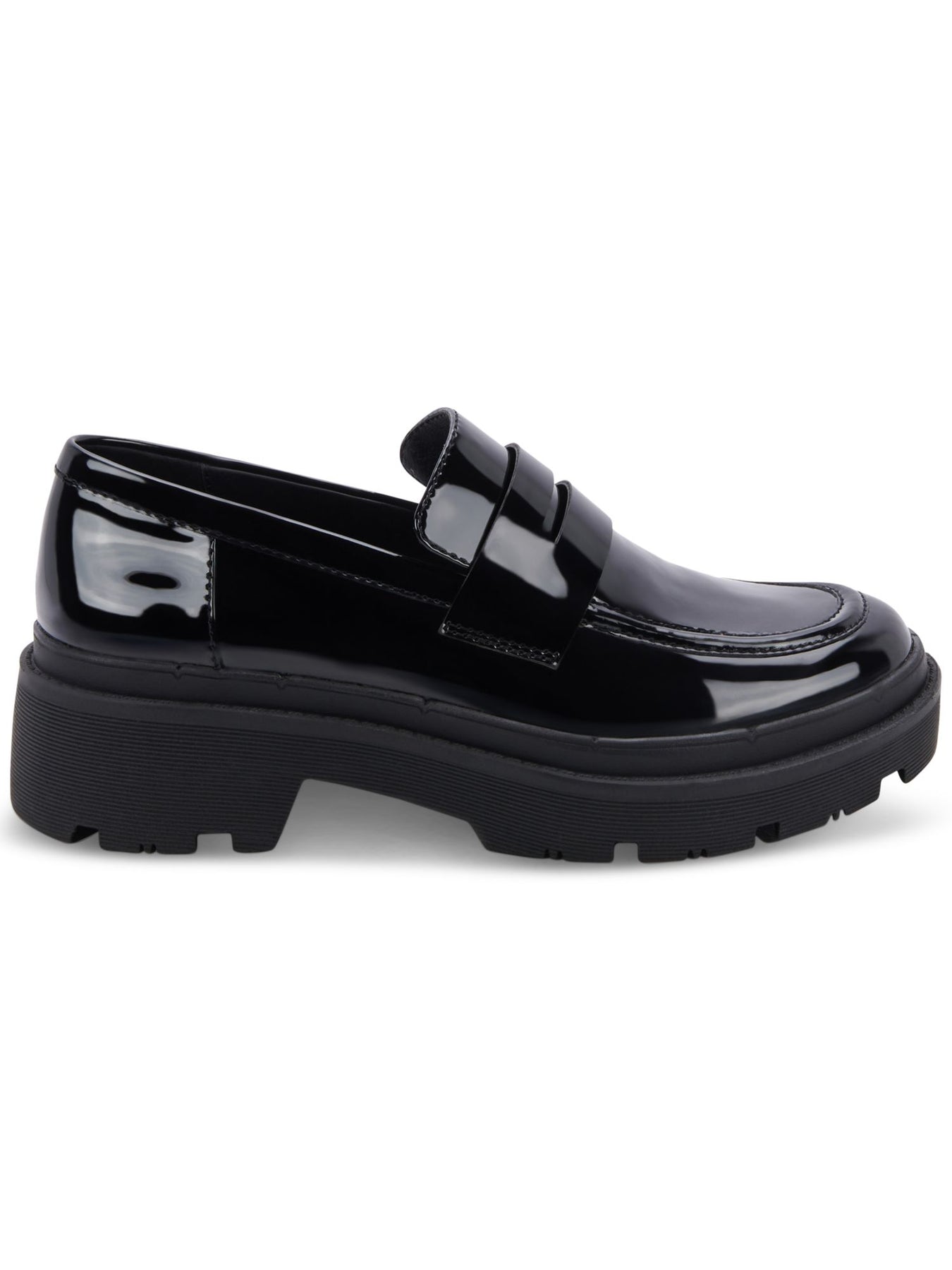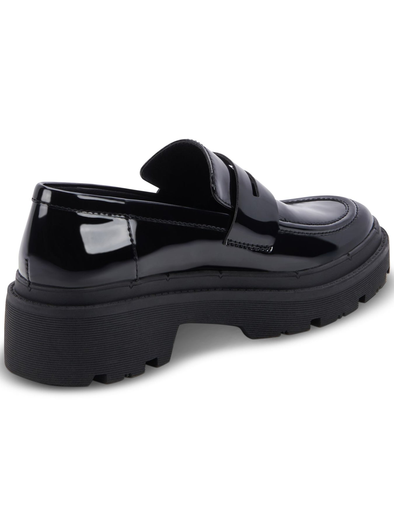 Womens Black 1" Platform Penny Keeper Lug Sole Waterproof Saanvi Round Toe Block Heel Slip On Loafers Shoes M