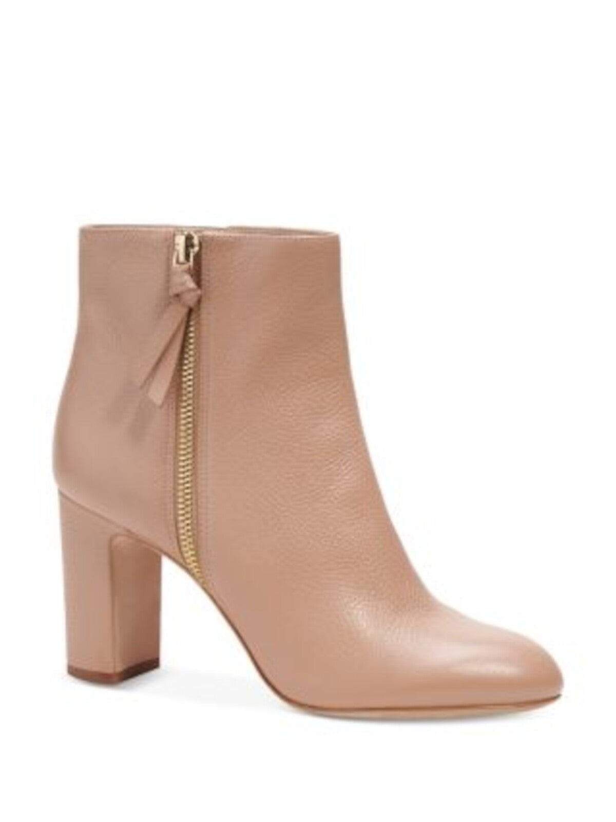 Womens Beige Pebbled Padded Knott Round Toe Block Heel Zip-Up Leather Booties B