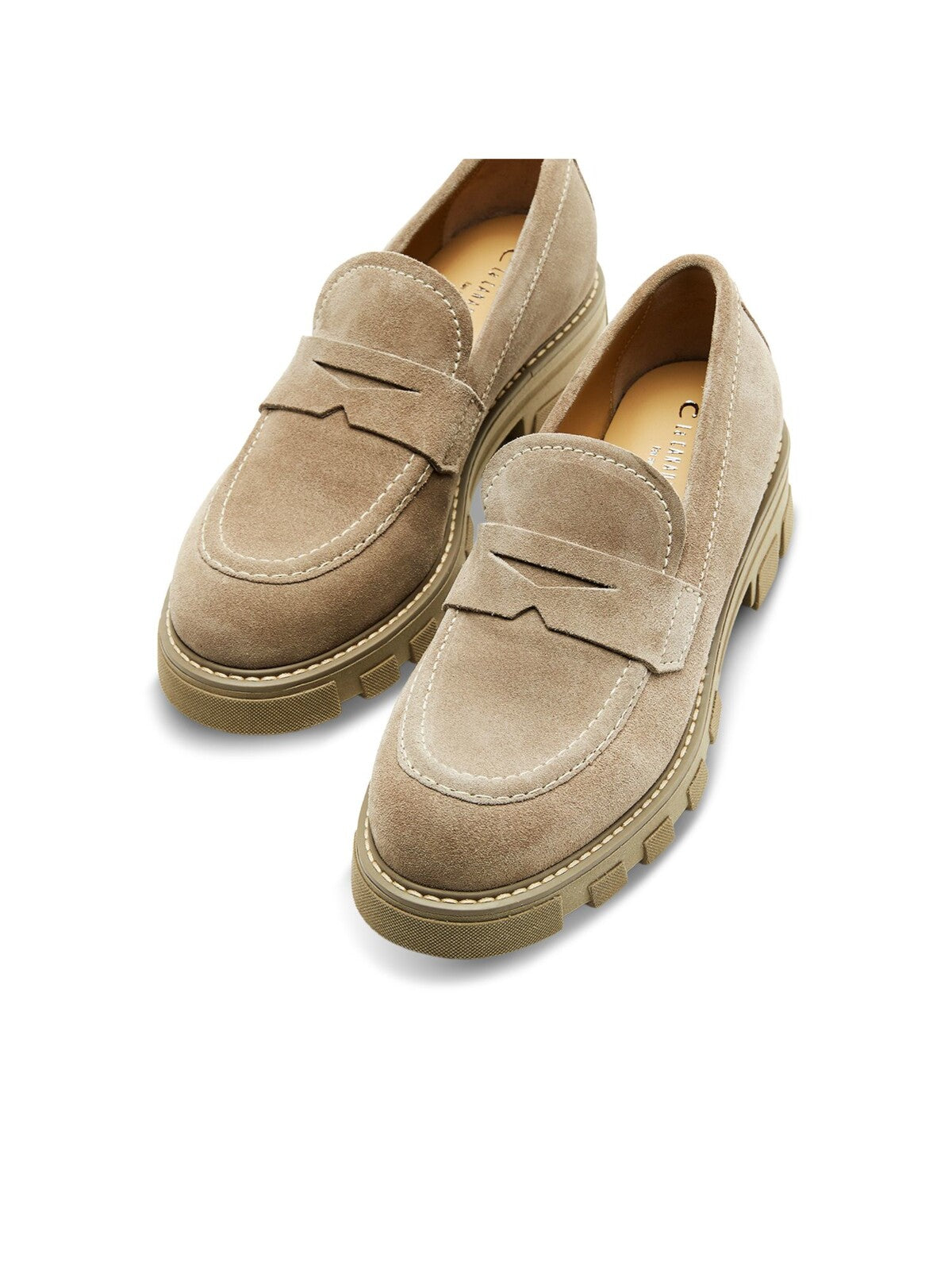 Womens Beige Penny Strap Lug Sole Cushioned Daniel Almond Toe Slip On Leather Loafers Shoes M