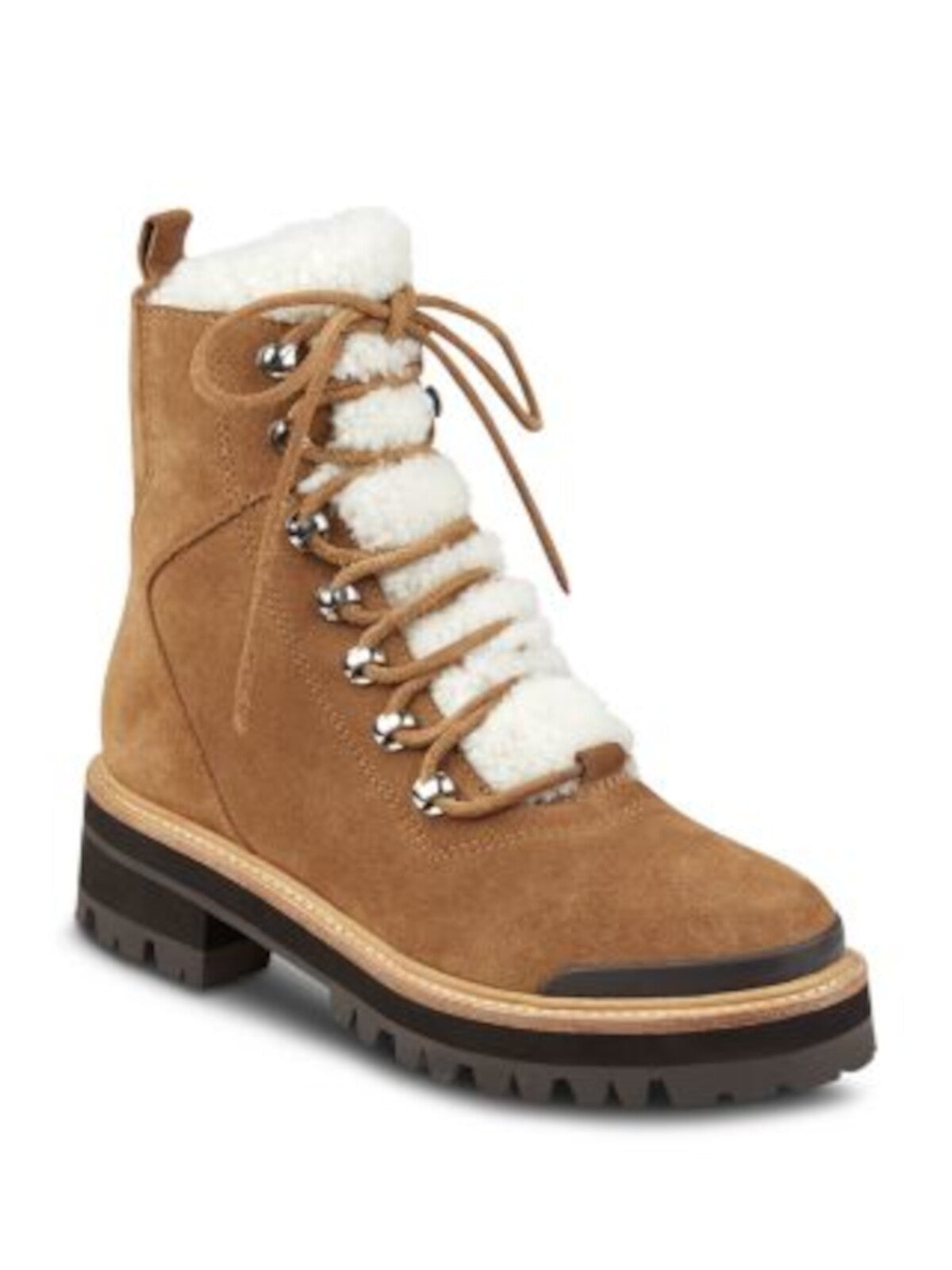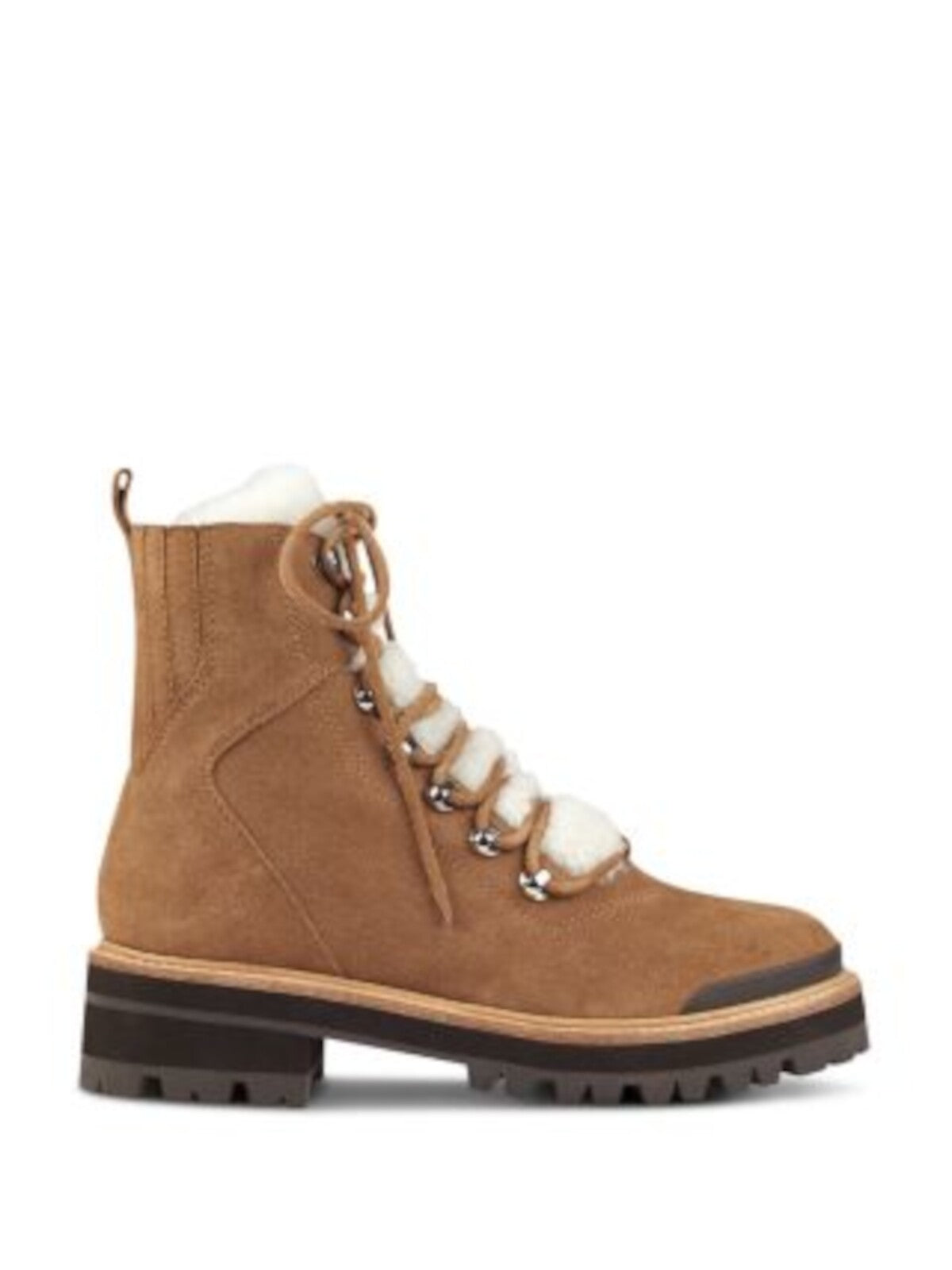 MARC FISHER LTD Womens Brown Shearling Heel Pull-Tab Goring Padded Izzie Round Toe Lace-Up Leather Winter Boots M
