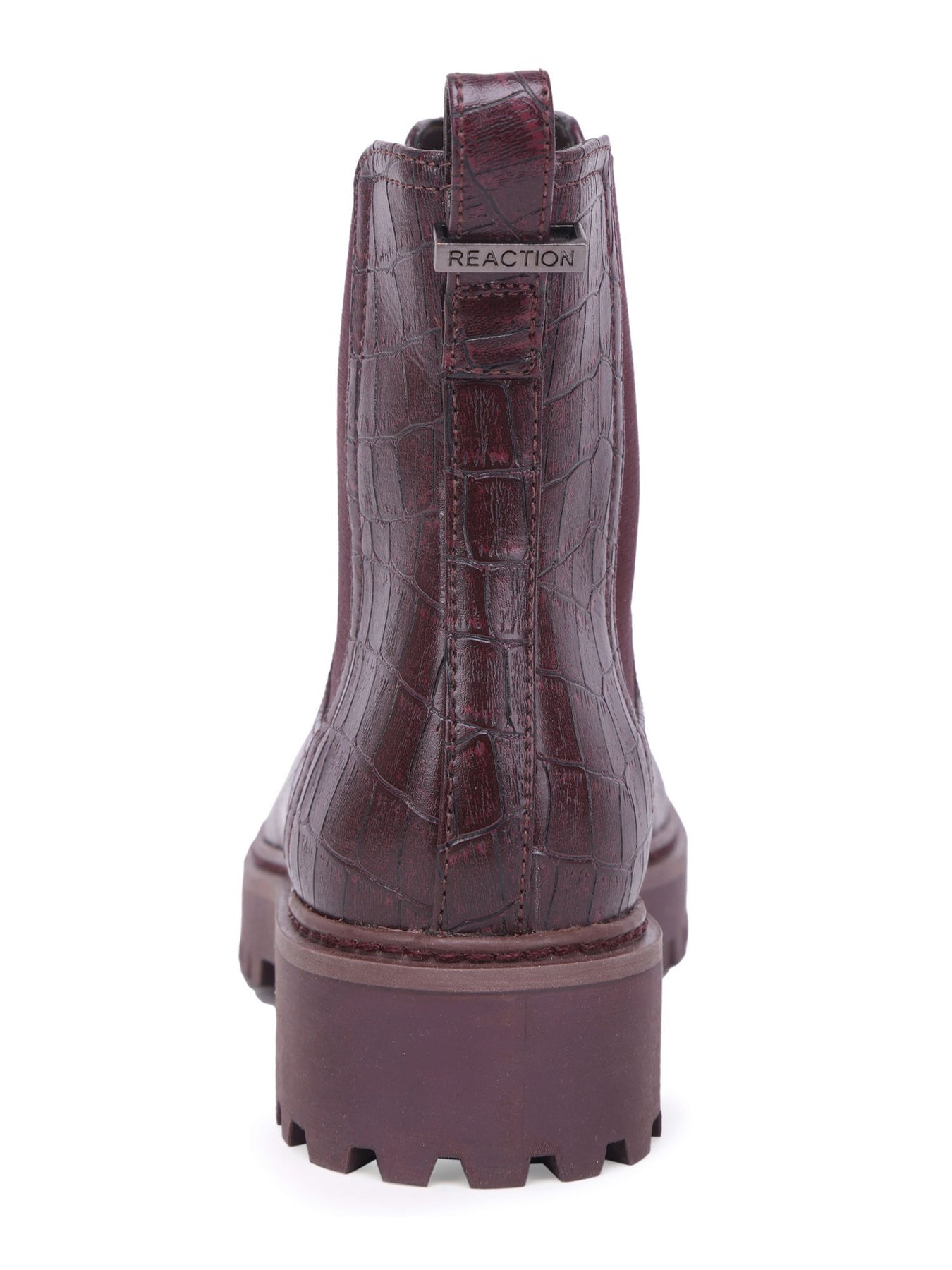 REACTION KENNETH COLE Womens Burgundy Snake Skin Lug Sole Salt Round Toe Block Heel Slip On Chelsea 6