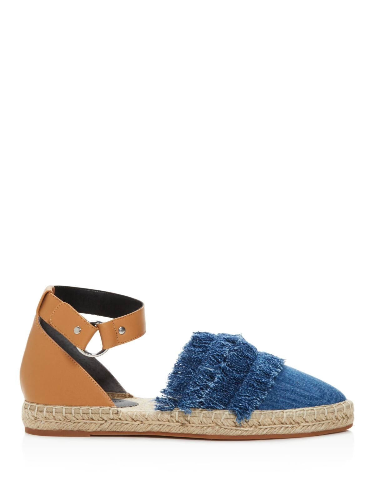 Womens Blue Mixed Media Ankle Strap Fringed Vicky Pointed Toe Buckle Espadrille Shoes M
