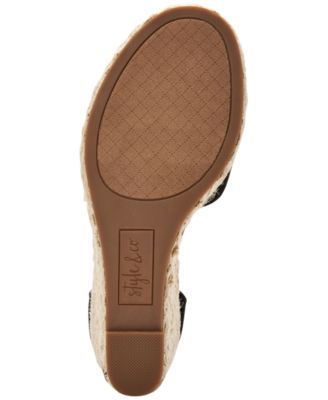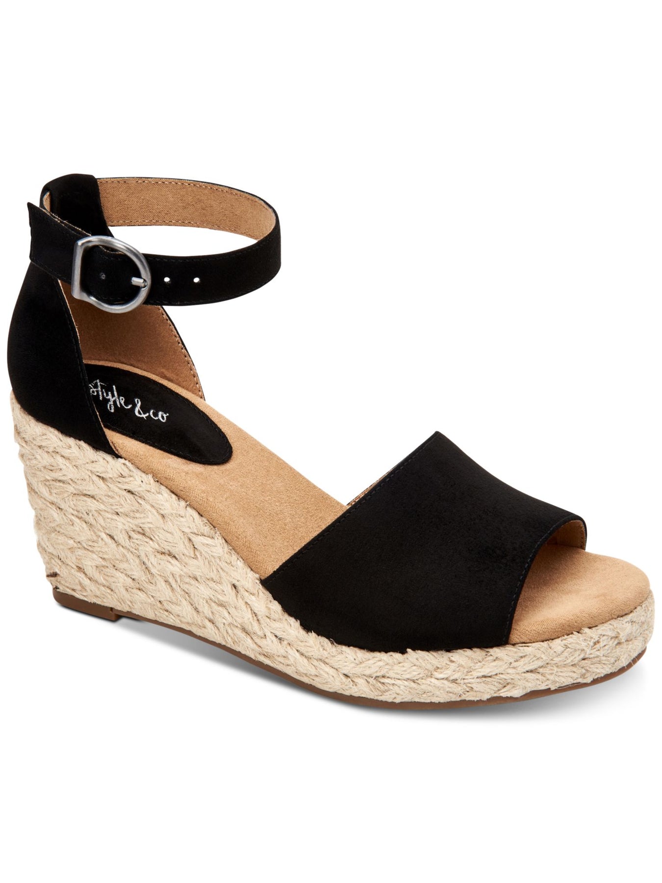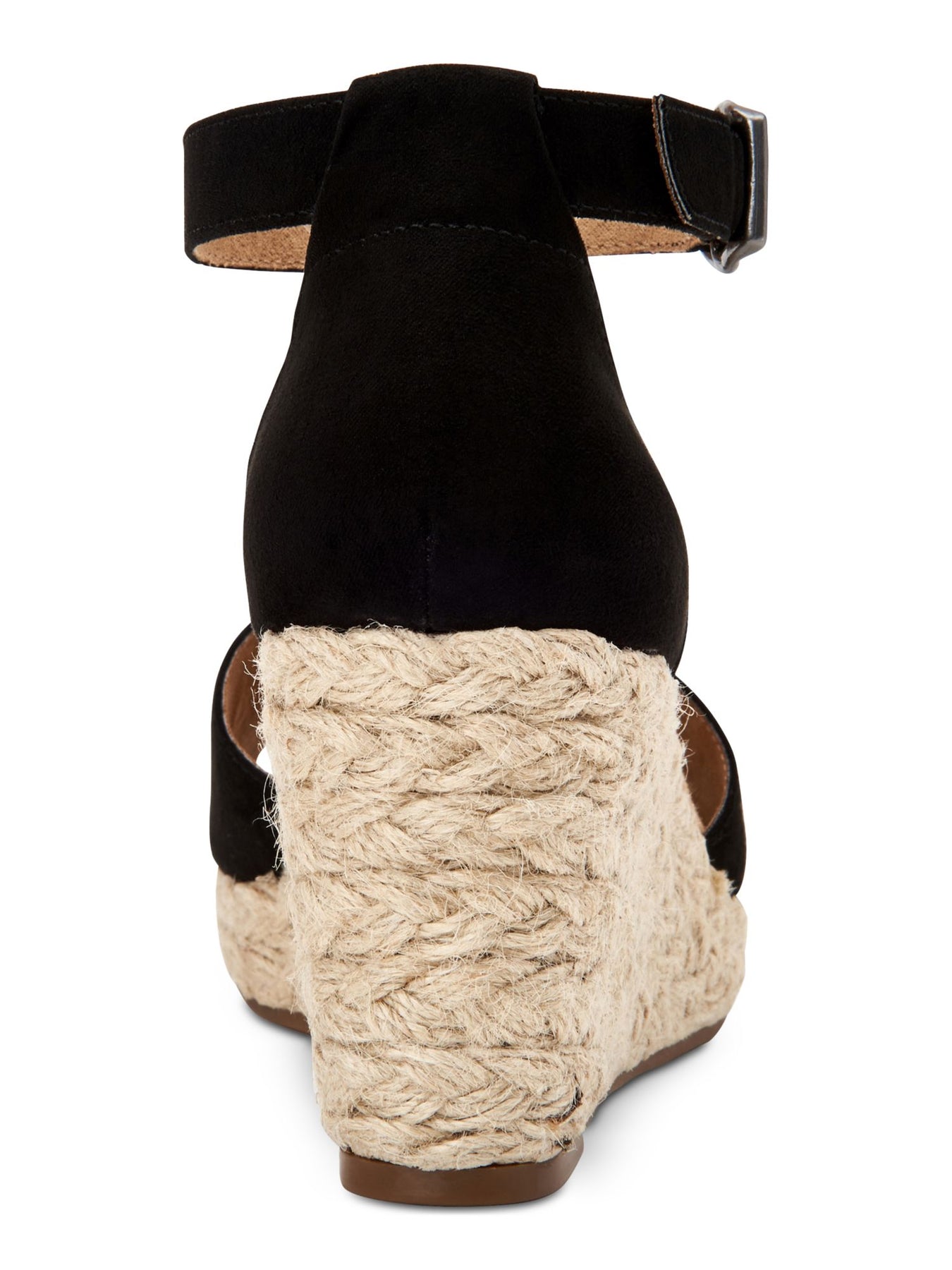 Womens Black Braided Espadrille Cushioned Seleeney Round Toe Wedge Buckle Sandals Shoes M