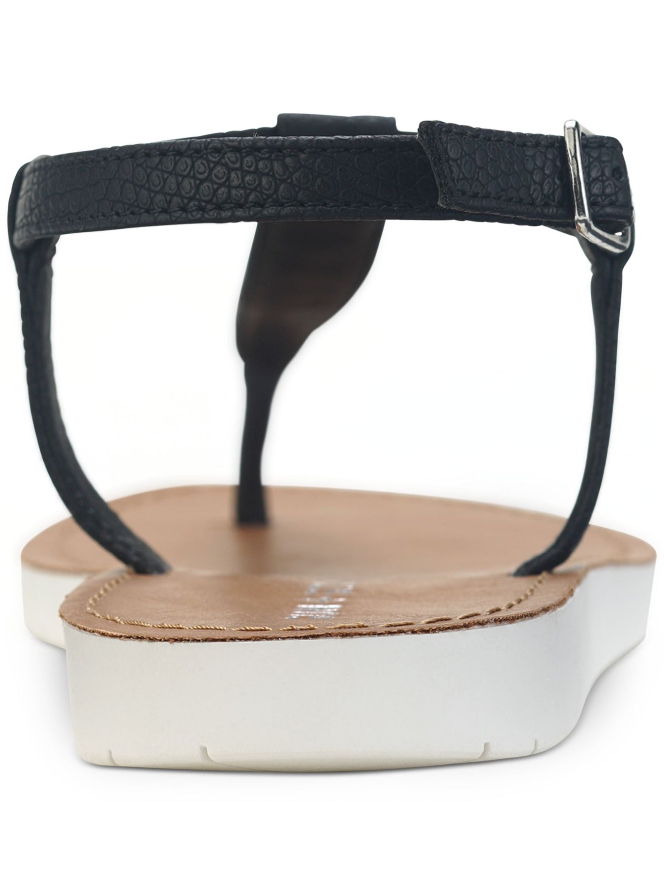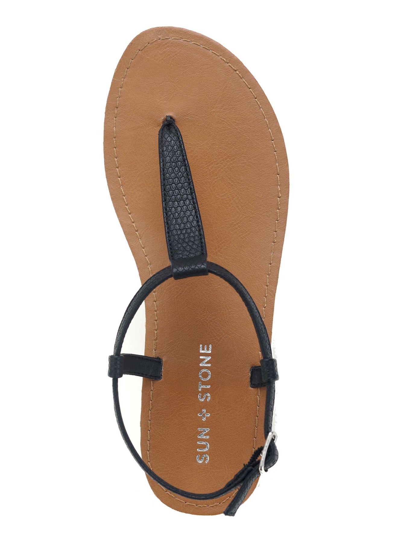 SUN STONE Womens Black Slip Resistant Cushioned Kristi Round Toe Buckle Slingback Sandal M