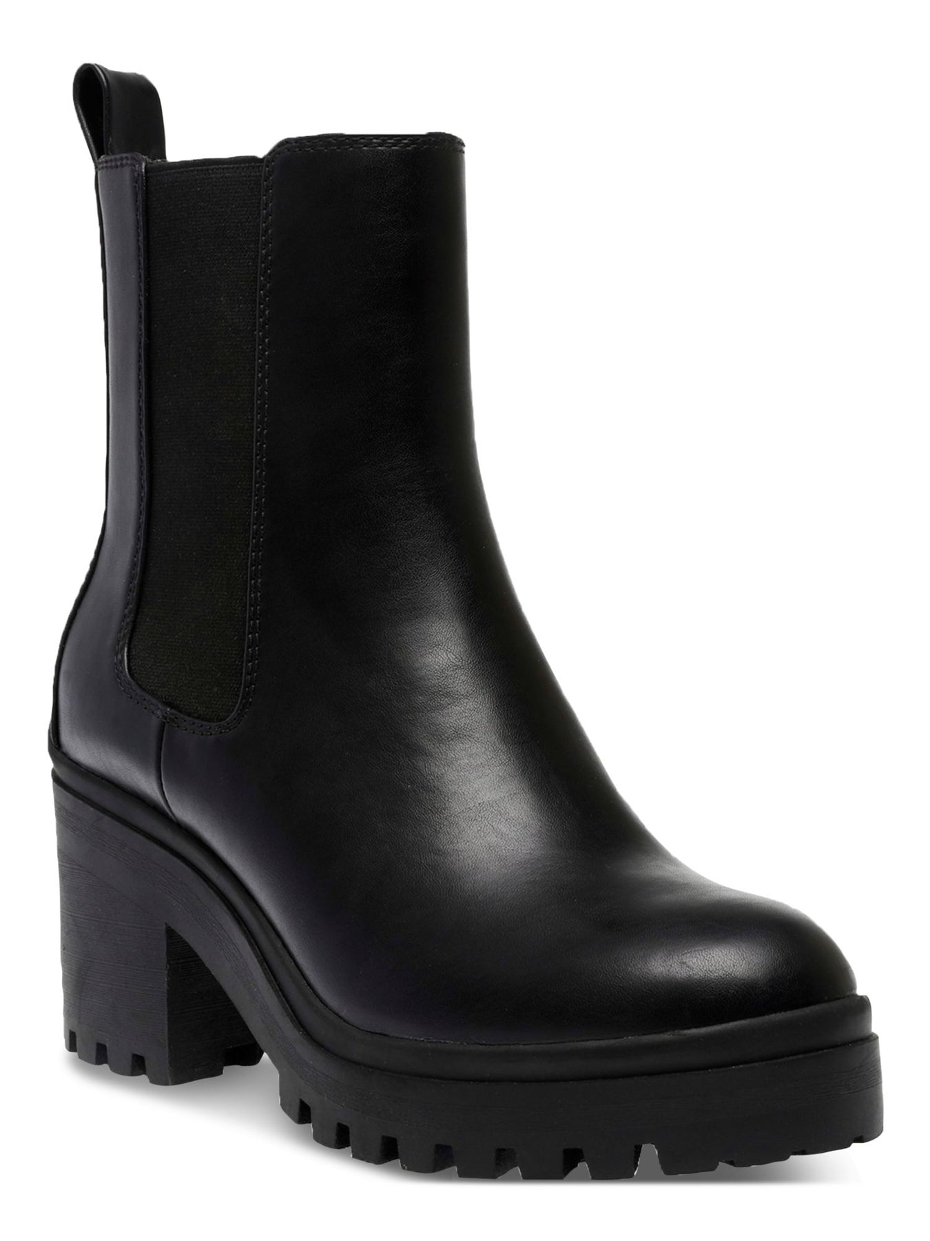 Womens Black Treaded Goring Lug Sole Brooklan Almond Toe Zip-Up Chelsea Boot M