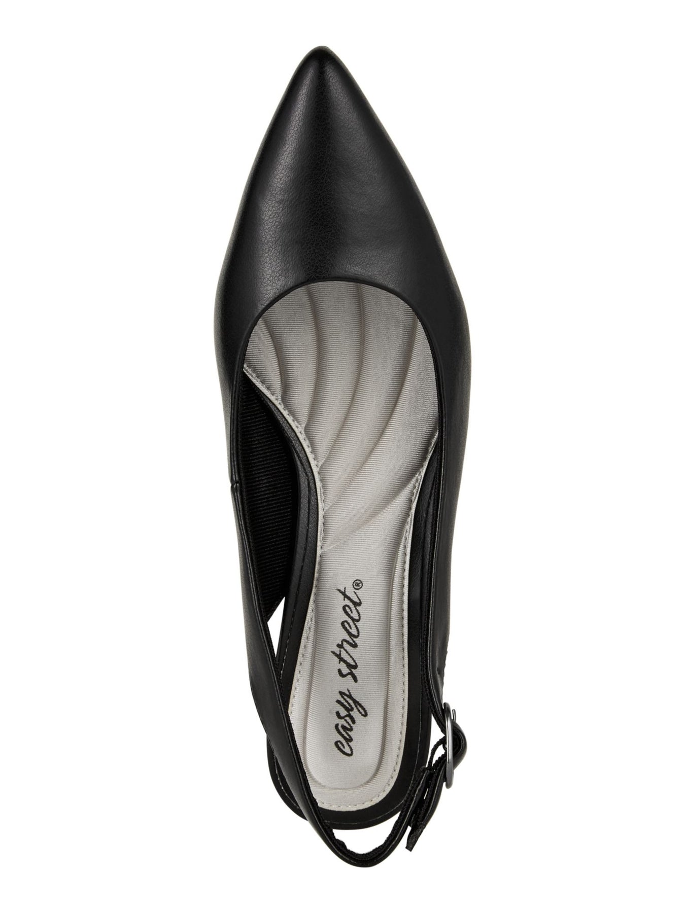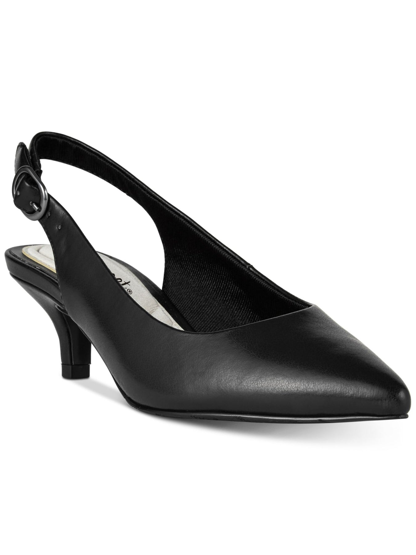 EASY STREET Womens Black Stretch Gore Padded Adjustable Faye Pointed Toe Kitten Heel Buckle Dress Slingback N