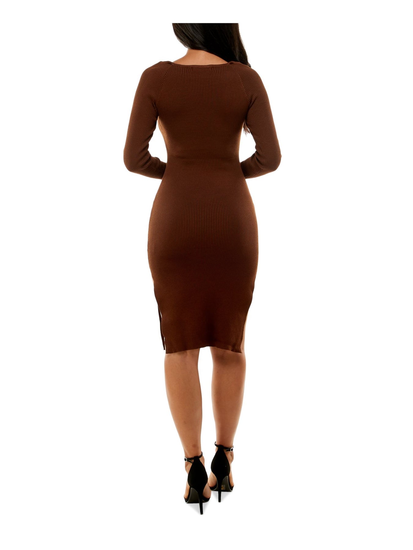 Womens Brown Cold Shoulder Ribbed Side Slits Raglan Sleeve Halter Midi Party Sweater Dress