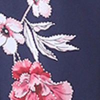 Womens Navy Smocked Sheer Floral Elbow Sleeve Surplice Neckline Midi Party Fit + Flare Dress