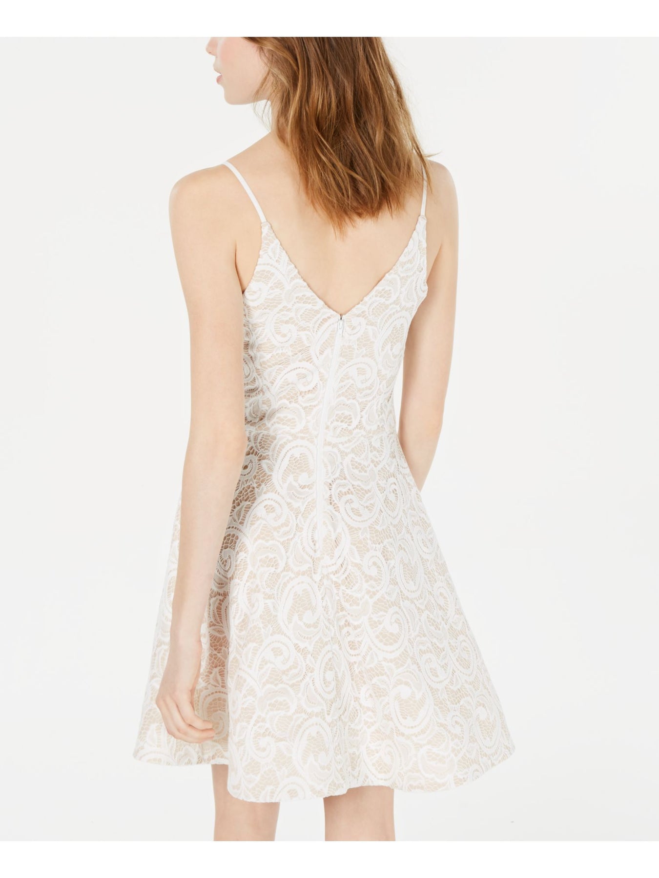 Womens Pink Textured Lace Spaghetti Strap Sweetheart Neckline Short Party Fit + Flare Dress