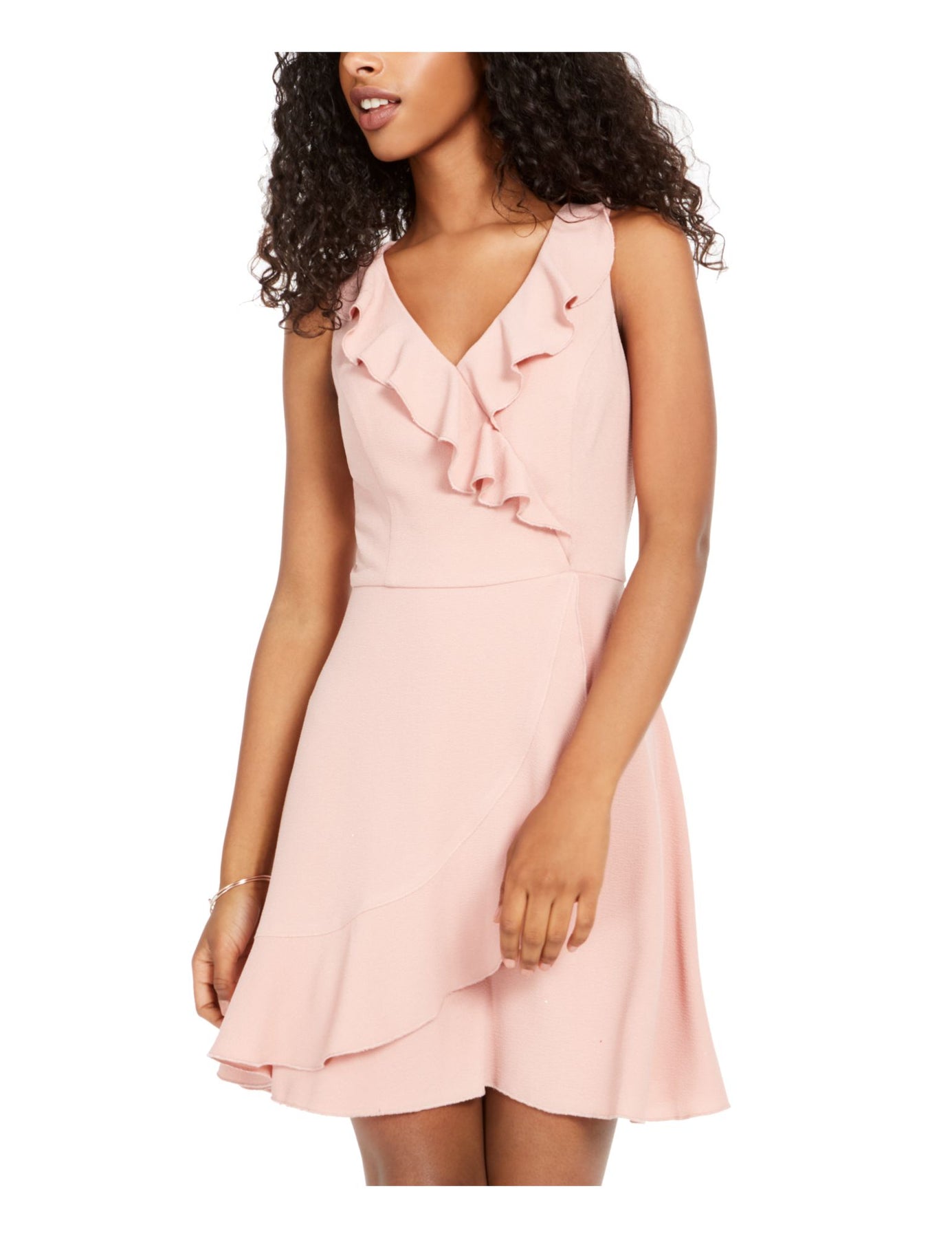 TEEZE ME Womens Pink Ruffled Sleeveless V Neck Short Party Fit + Flare Dress 3\4