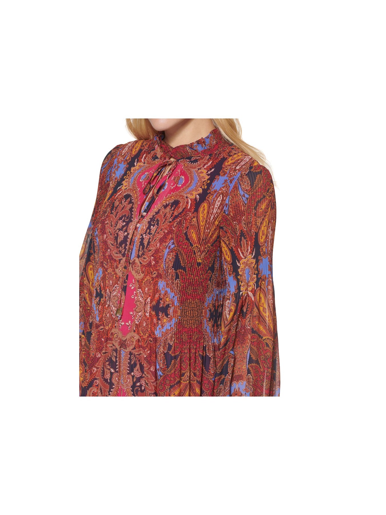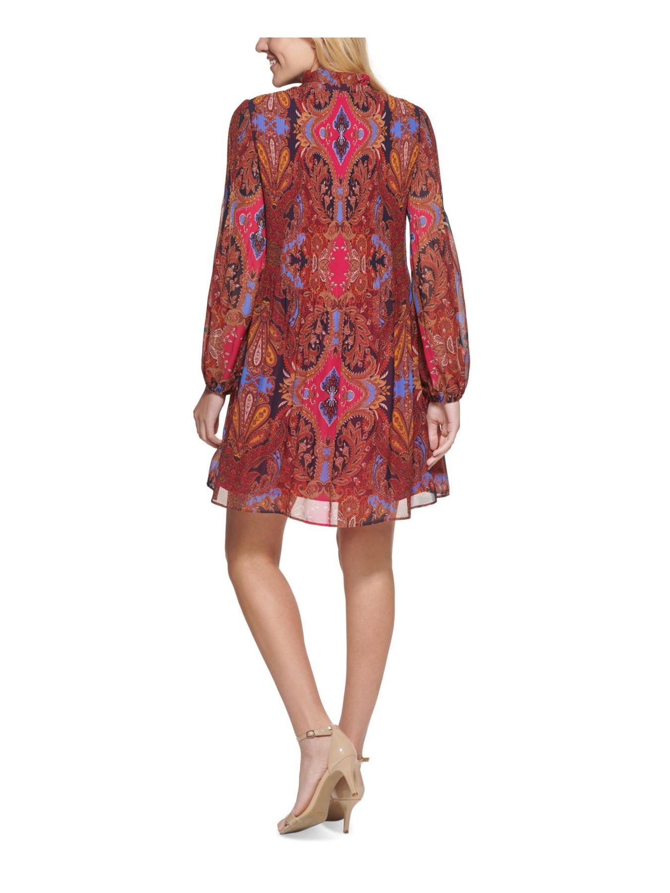 VINCE CAMUTO Womens Tie Printed Long Sleeve Mock Neck Short Party Shift Dress