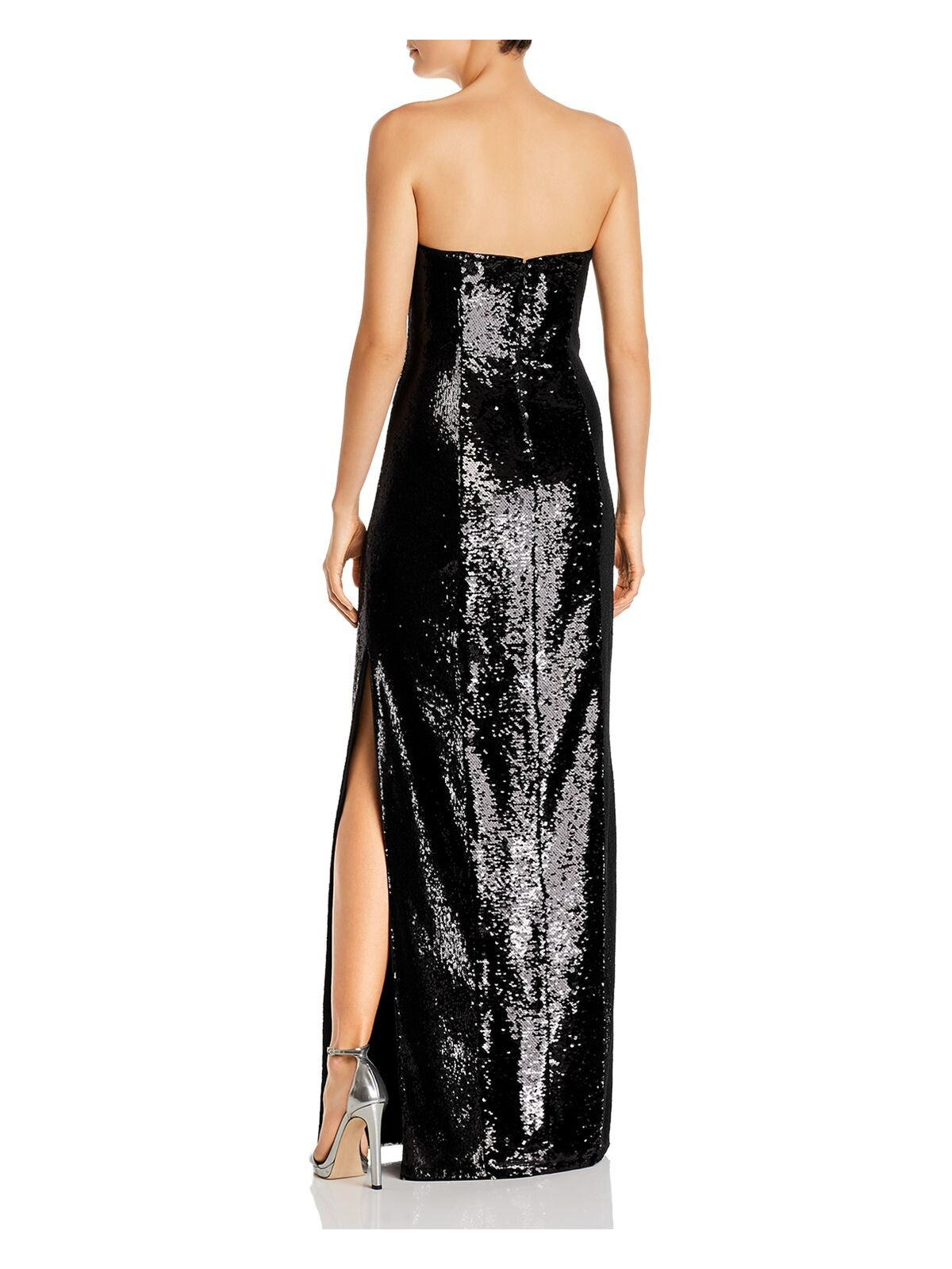 AIDAN AIDAN MATTOX Womens Black Sequined Zippered Sleeveless Strapless Full-Length Formal Sheath Dress 4