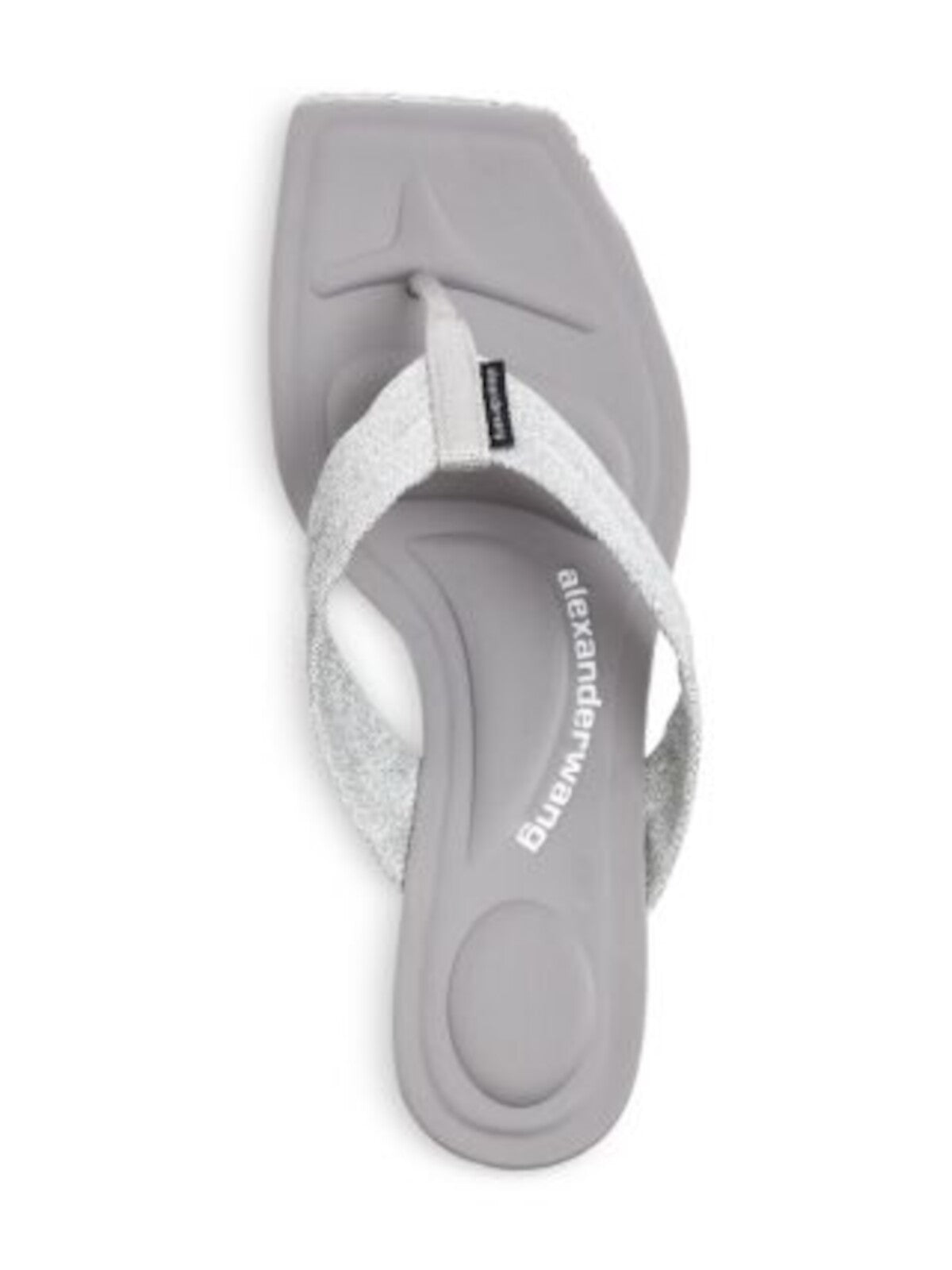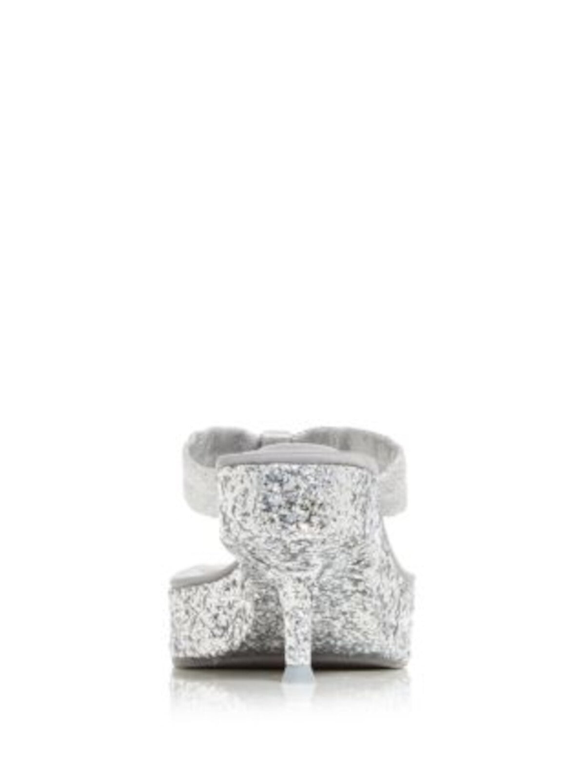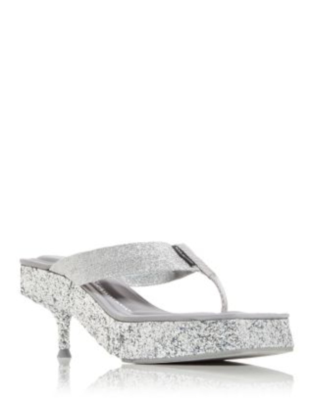 Womens Silver Glitter Padded Jessie Square Toe Kitten Heel Slip On Heeled Thong Sandals