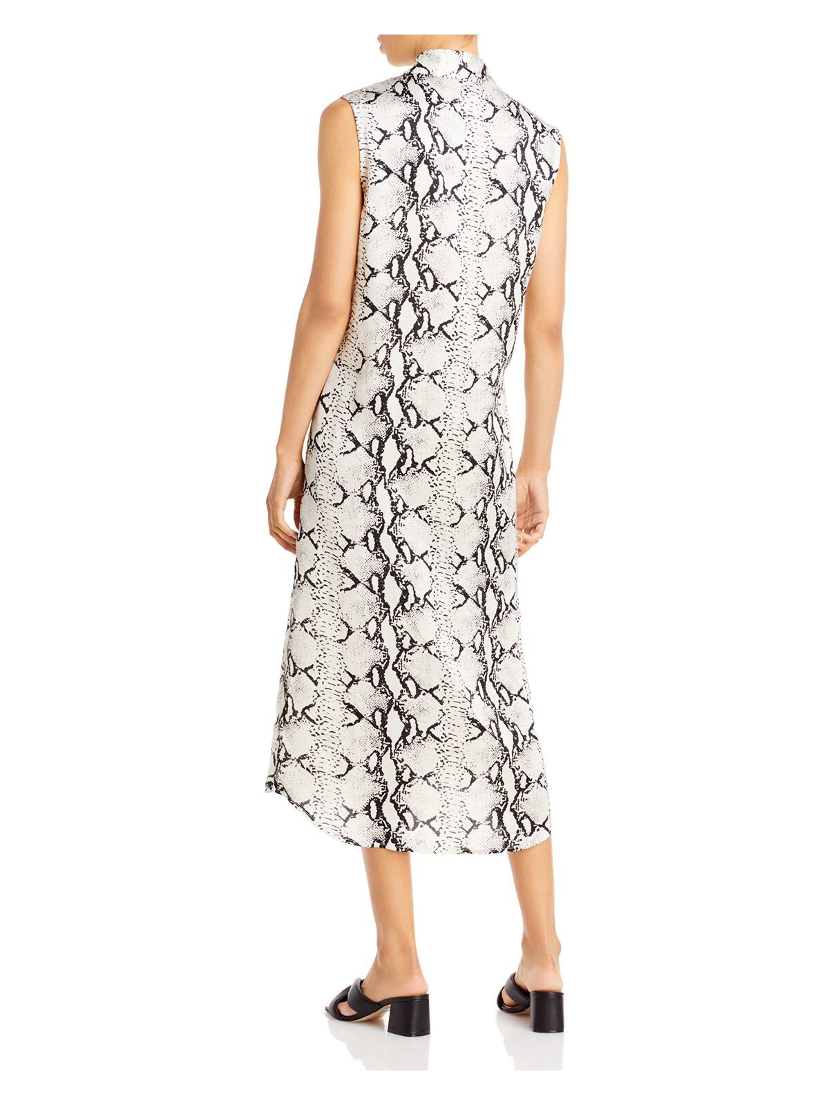 Womens Animal Print Sleeveless Collared Midi Wear To Work Shirt Dress