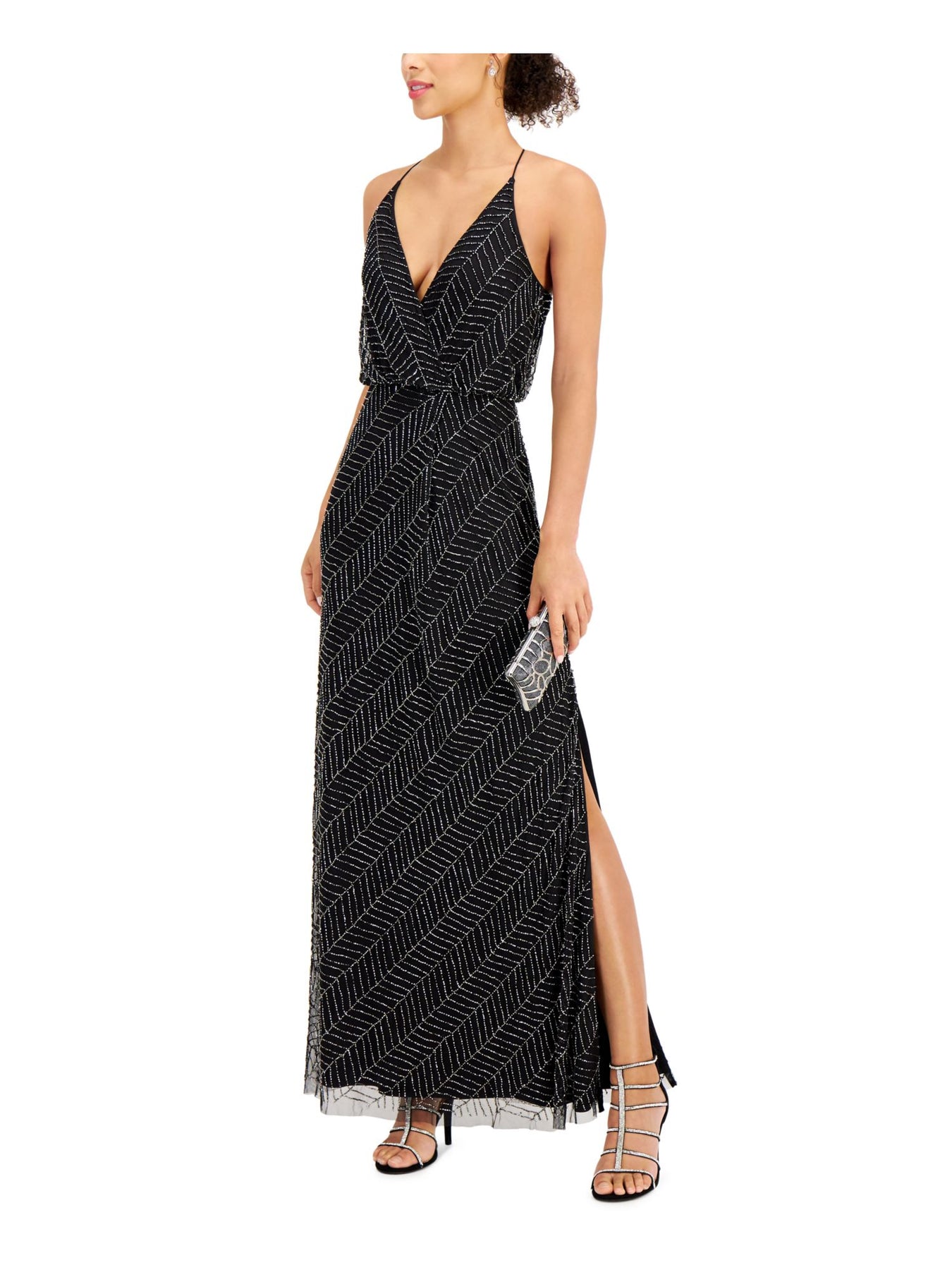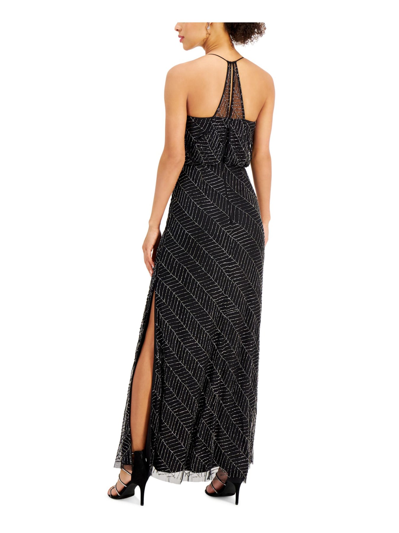 JKARA Womens Beaded Slitted Halter Maxi Evening Sheath Dress