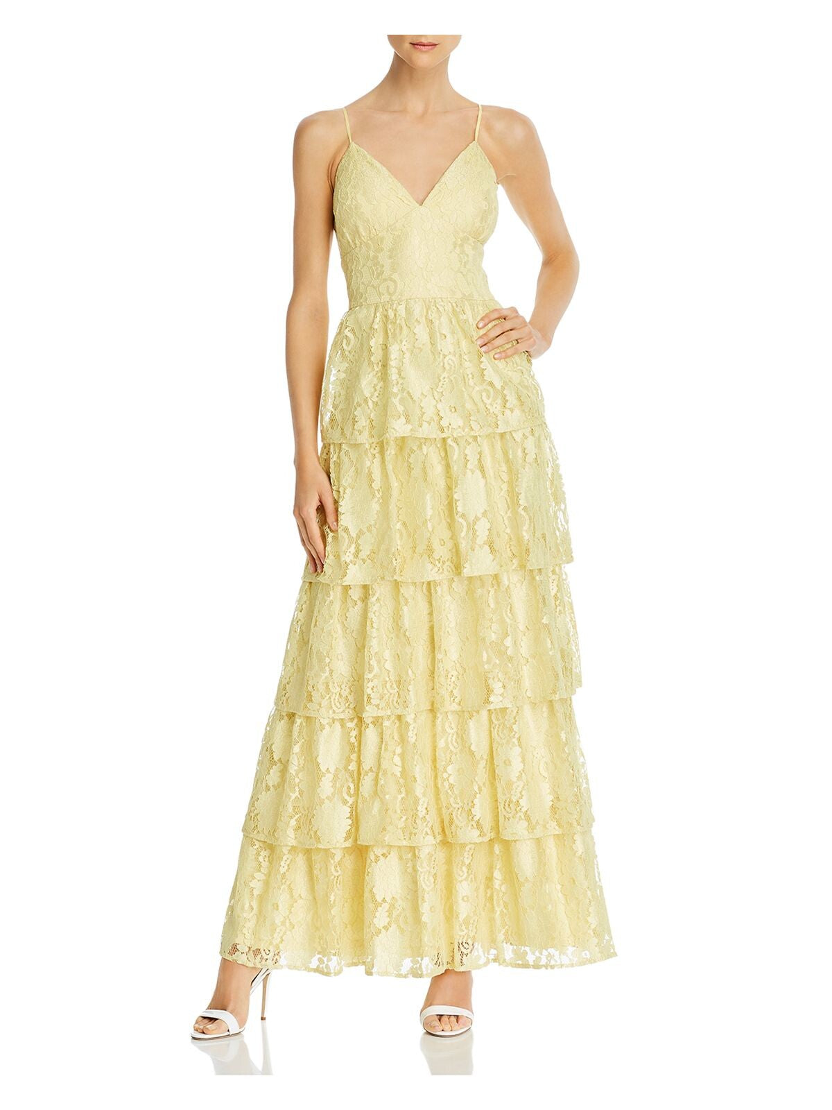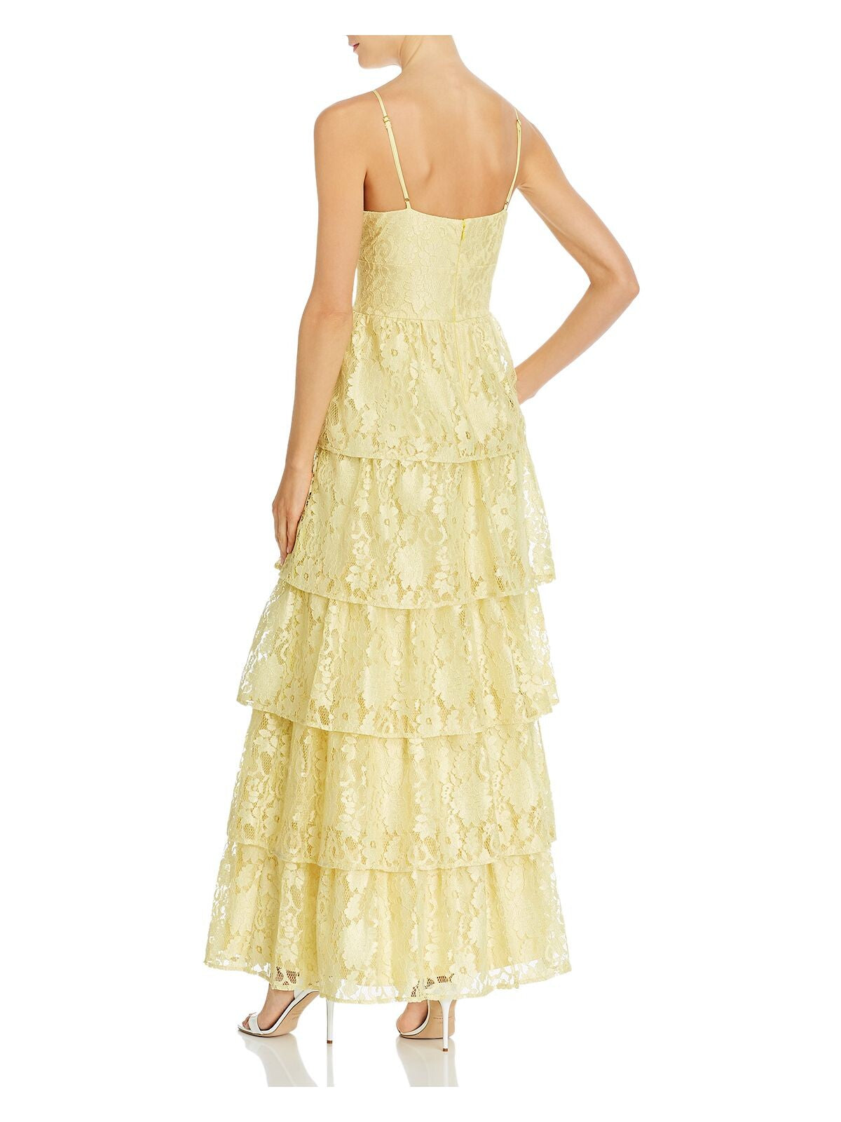 LAUNDRY BY SHELLI SEGAL Womens Yellow Lace Zippered Adjustable Straps Tiered Spaghetti Strap Sweetheart Neckline Full-Length Formal Gown Dress 4