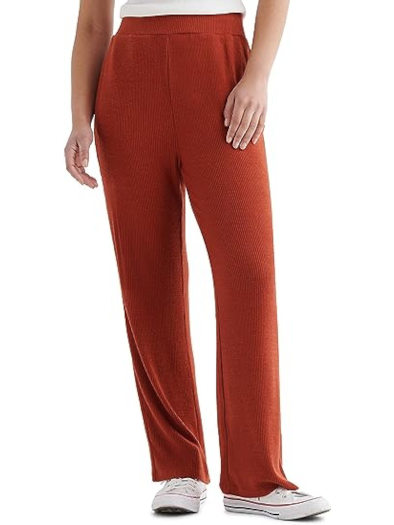 Womens Ribbed Elastic Waist Wide Leg Pants