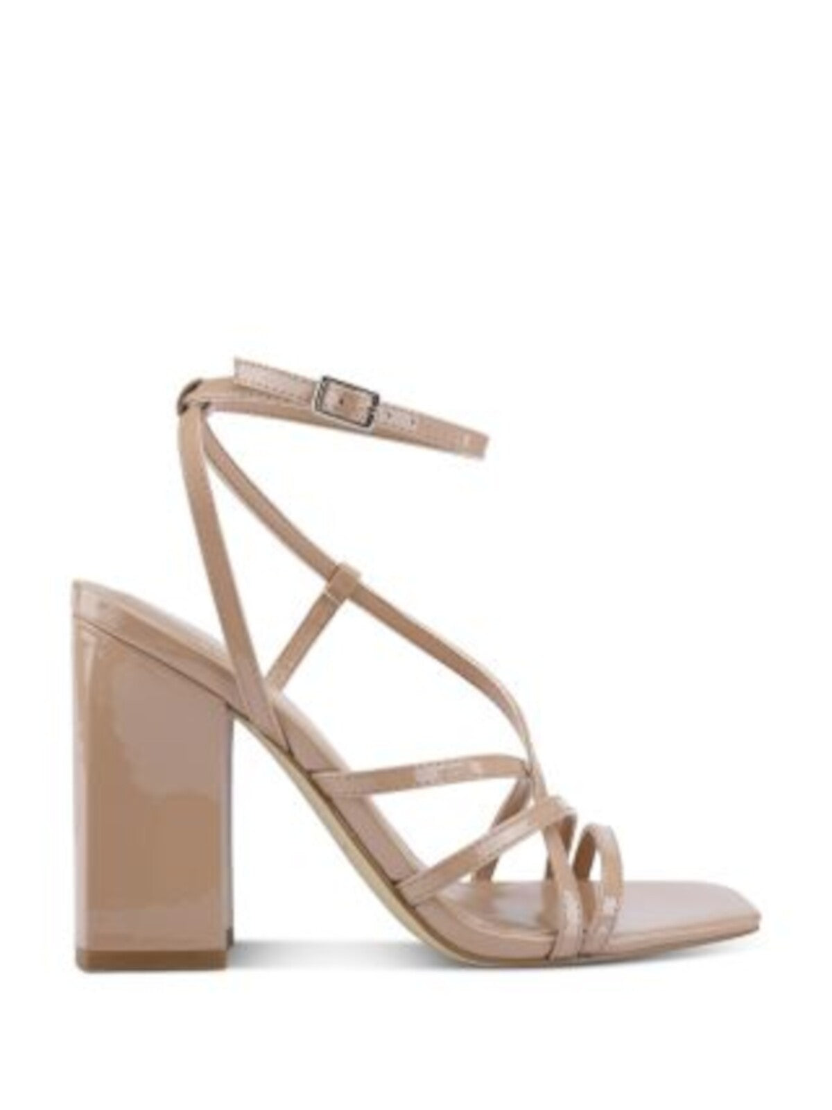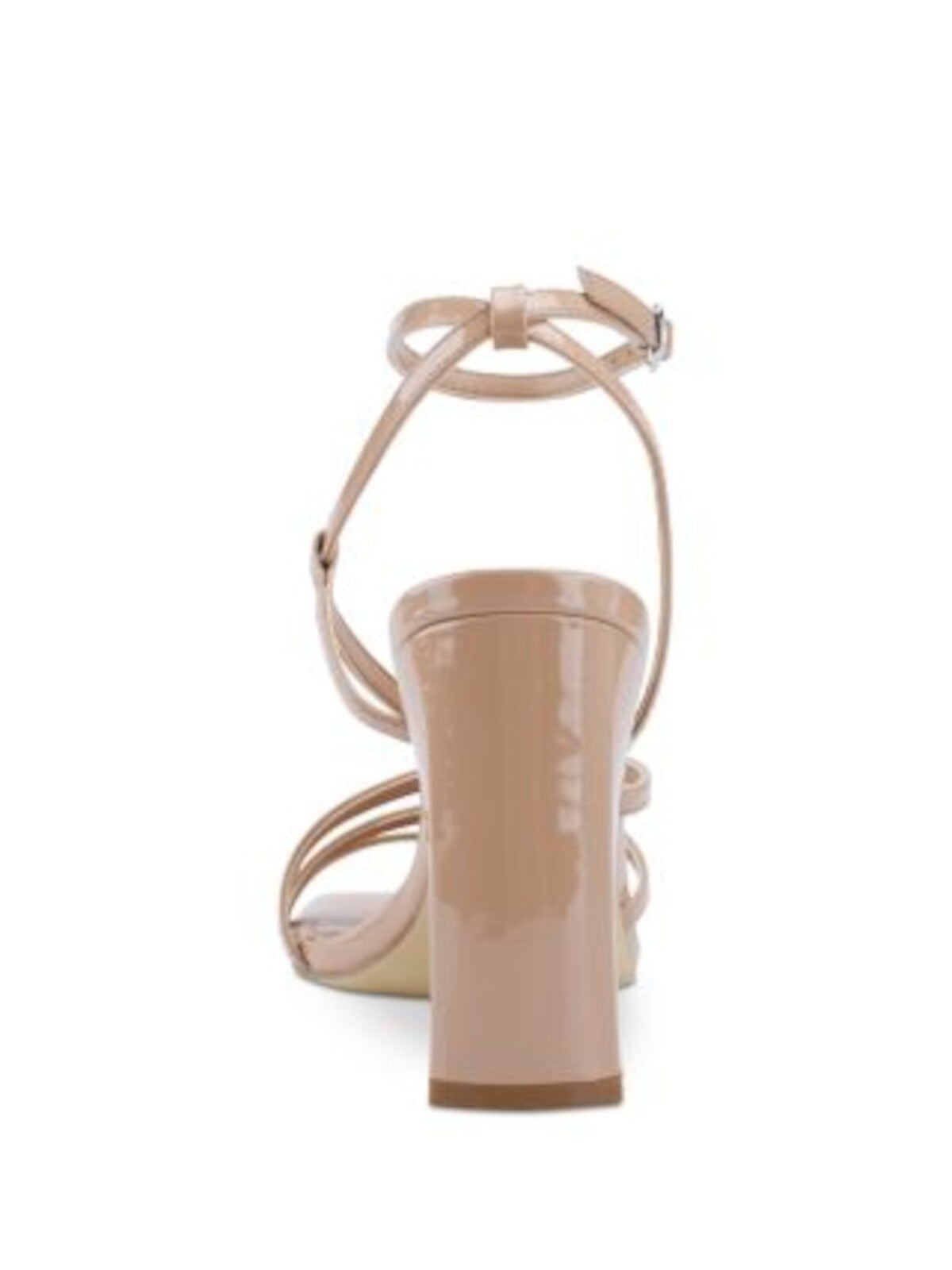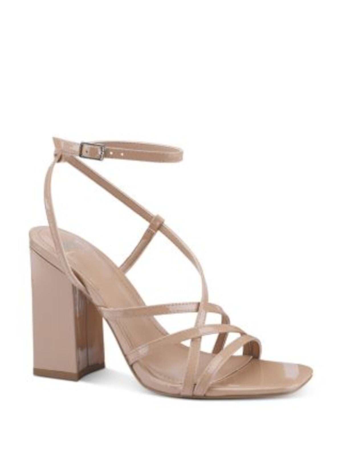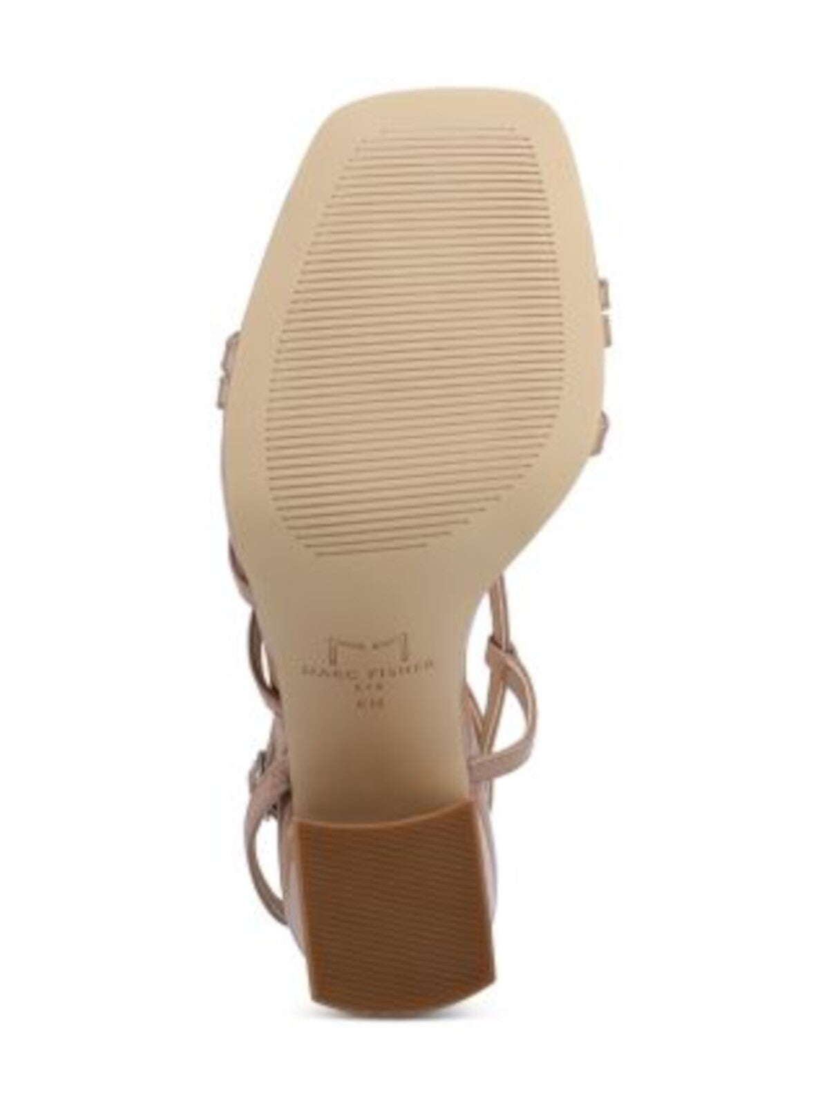 MARC FISHER LTD Womens Beige Padded Ankle Strap Edalyn Square Toe Block Heel Buckle Leather Dress Heeled Sandal 9.5 M